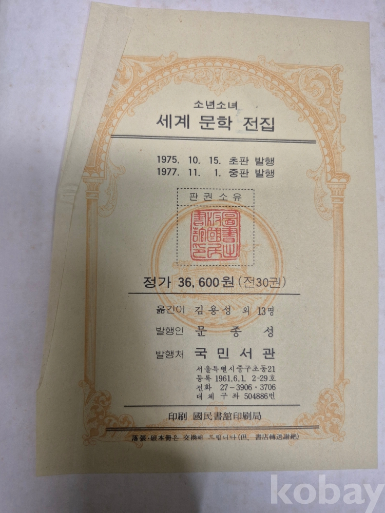| 제조국 | 한국 | 연대 | 1960년~1979년 |