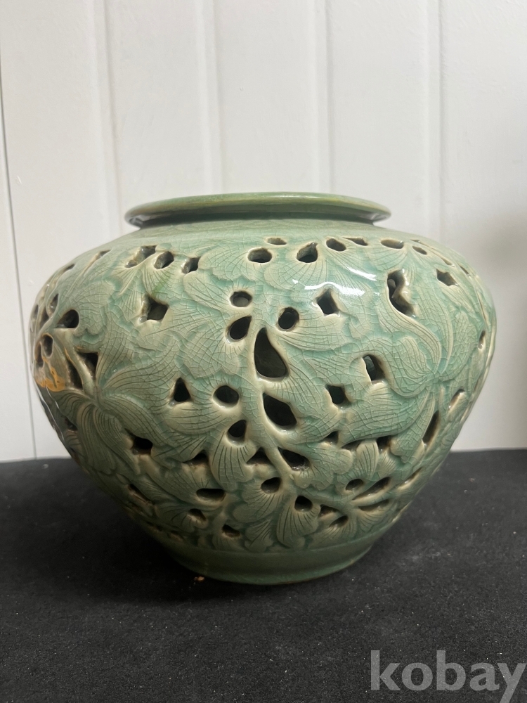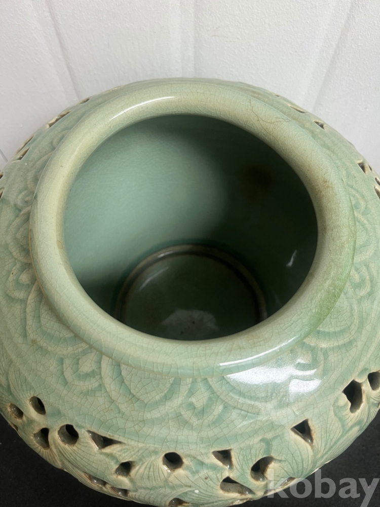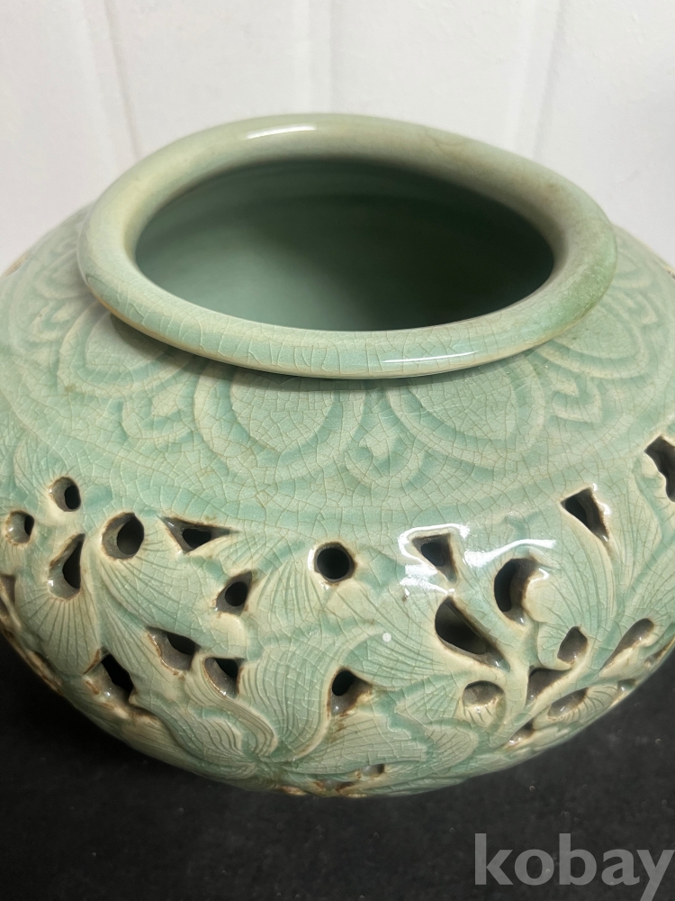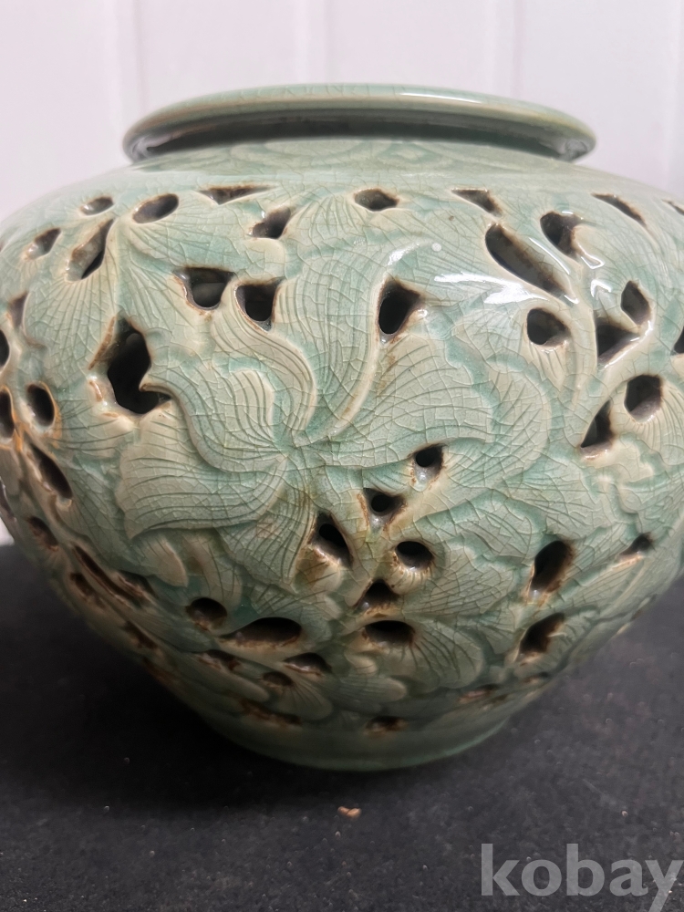 풍부한 장식성과 아름다운 청자유 색감을 갖춘 완성도 높은 작품입니다.