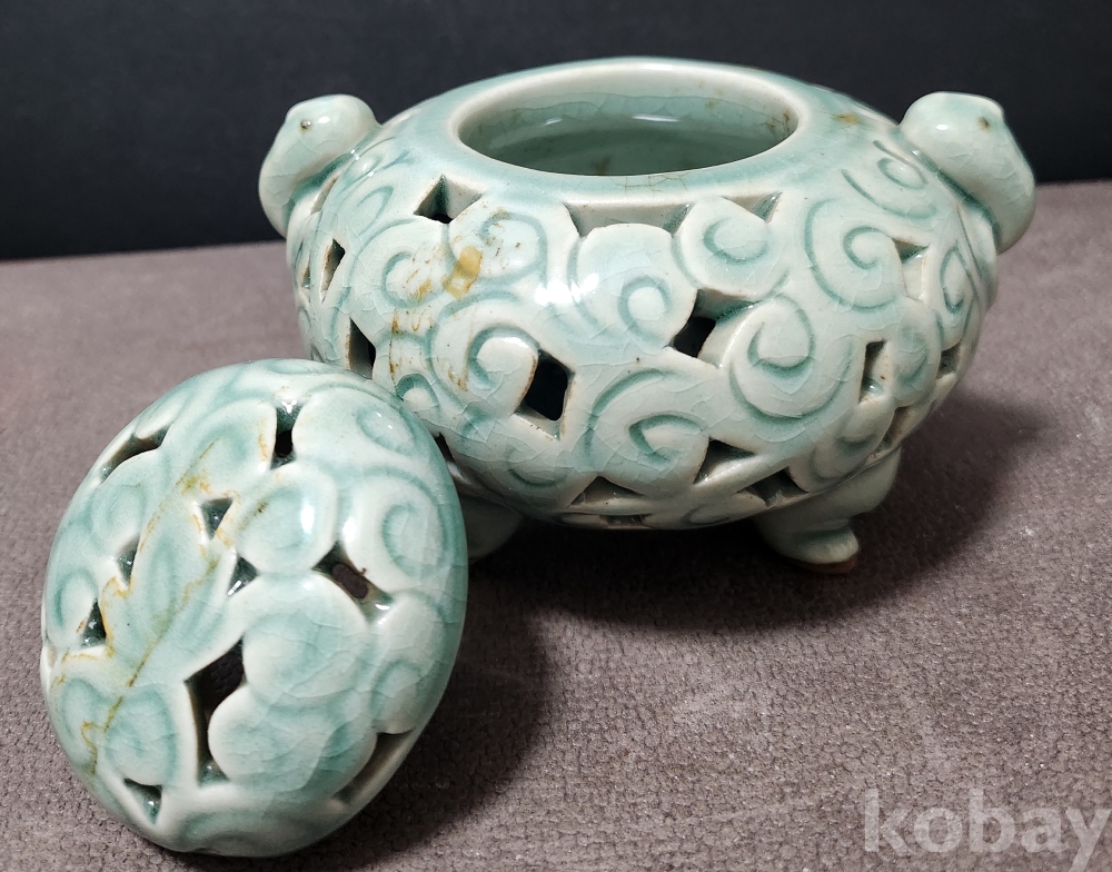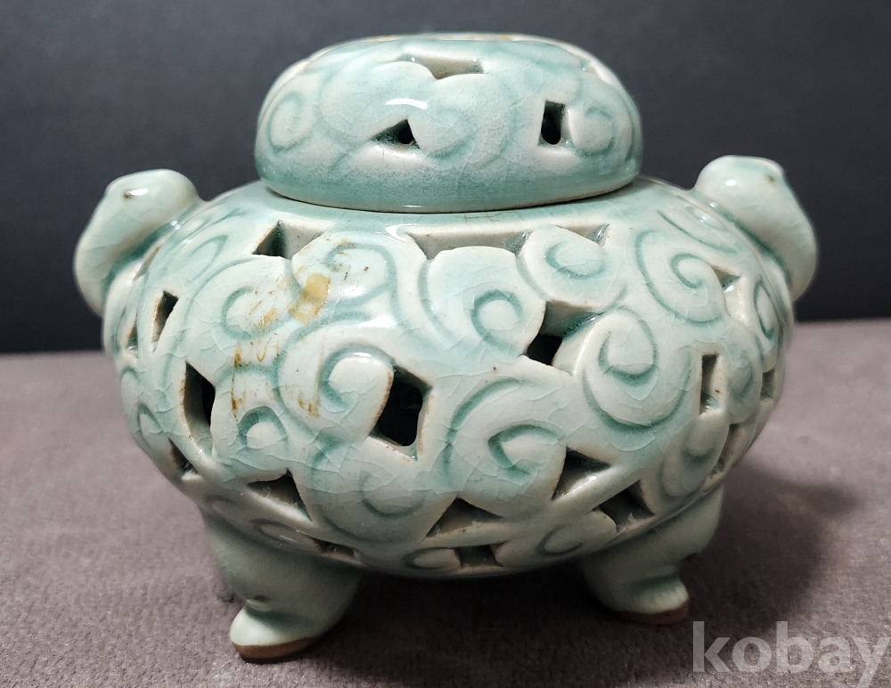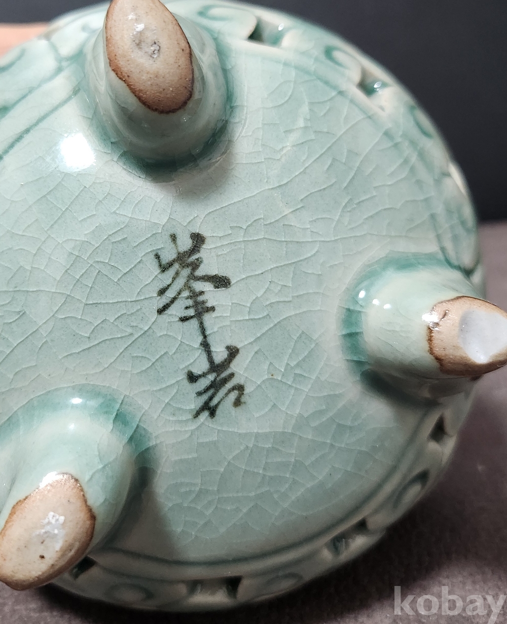 봉암 [峯岩] 윤병란 [尹柄欒] 청자투각양이호향로 靑磁透刻兩耳壺 香爐