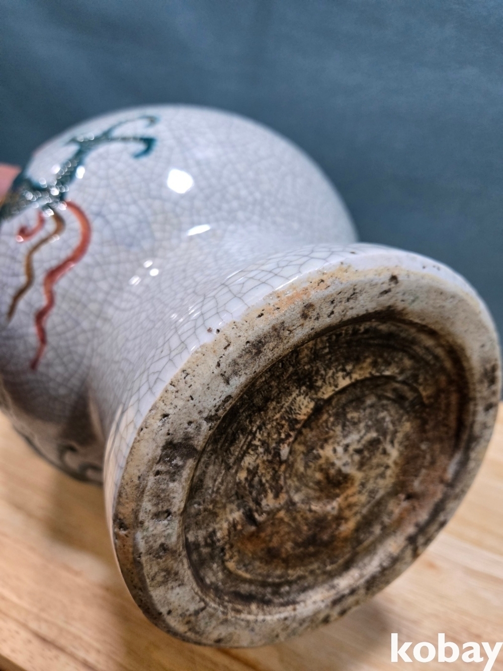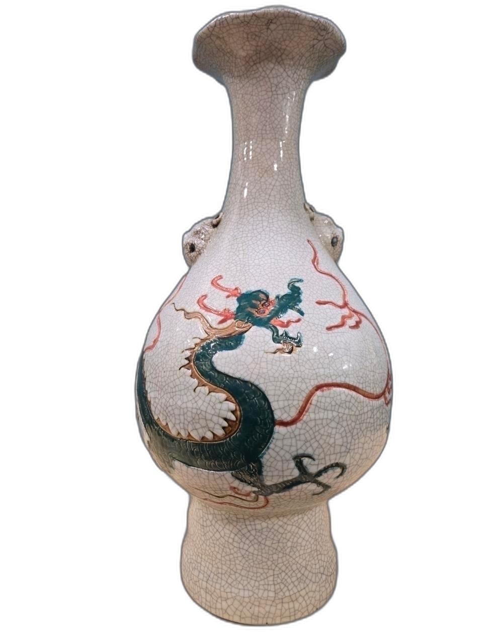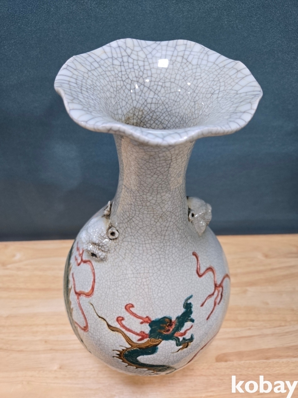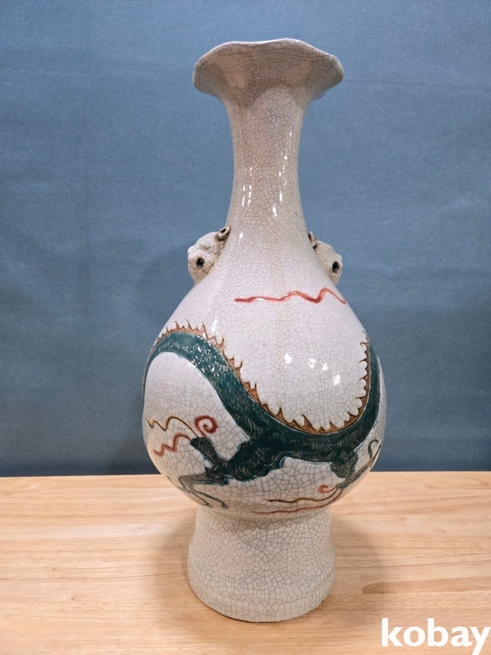 초록 용이 몸통을 휘감겨 있는 화형 양이 도자기 입니다.