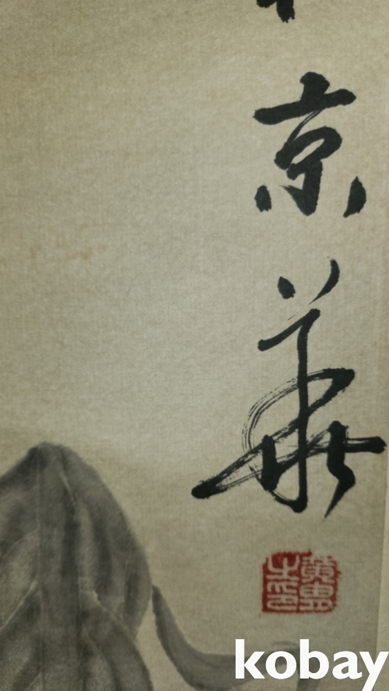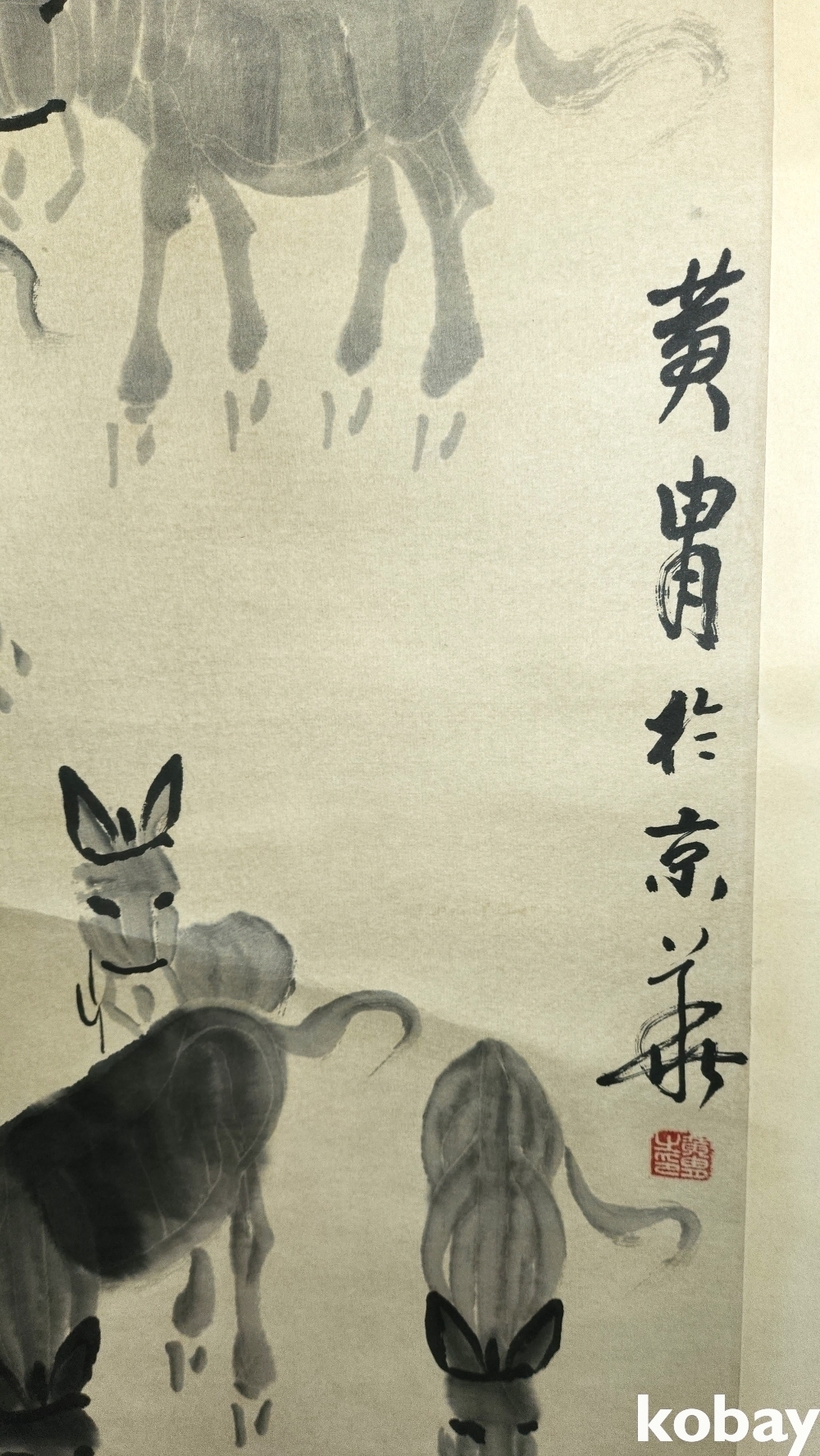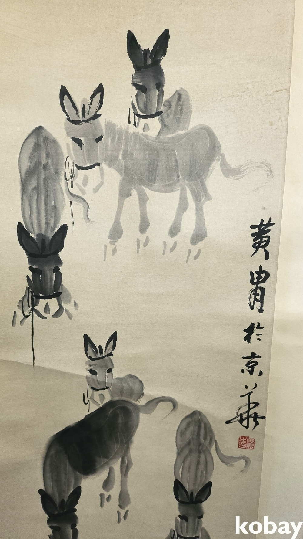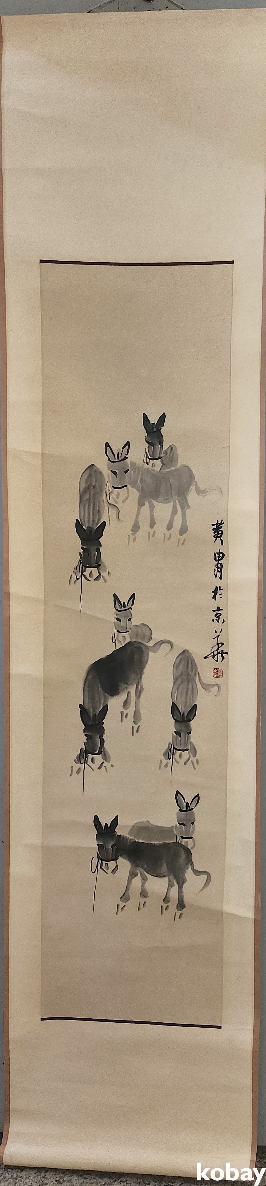 중국유명화가 황주(黄胄) 수결이 보이는 종이에 채색된 당나귀 그림 족자입니다,