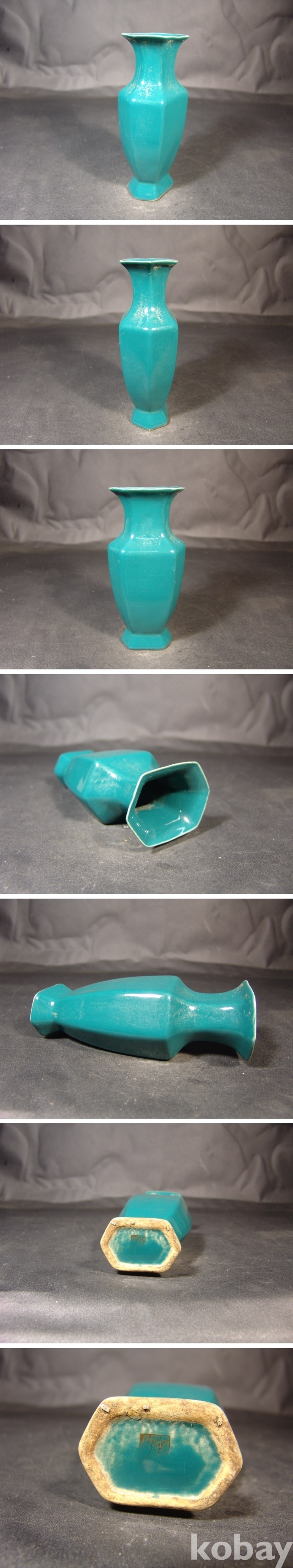 육각으로 각이 진 시요 녹유병으로
