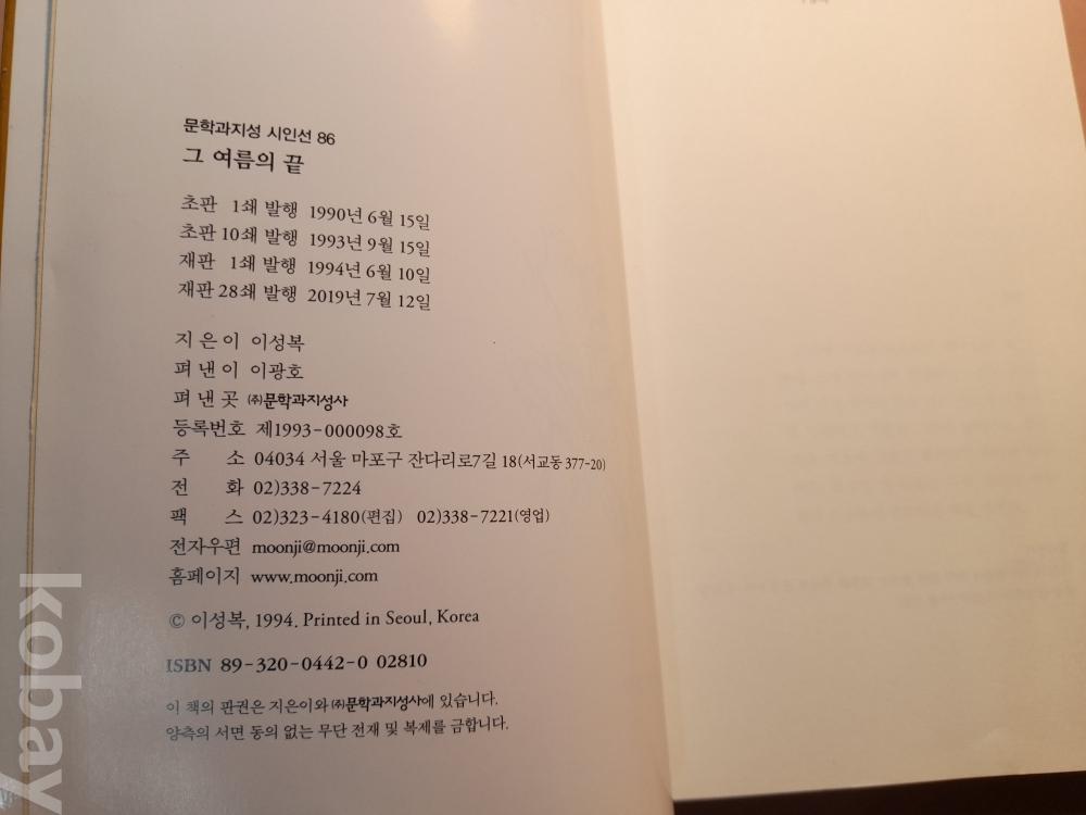 문락과 지성 시인선 * 이성복 시집 그 여름의 끝