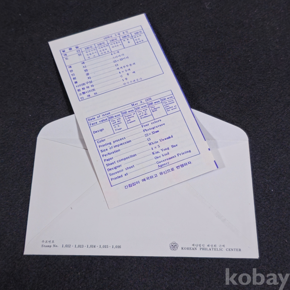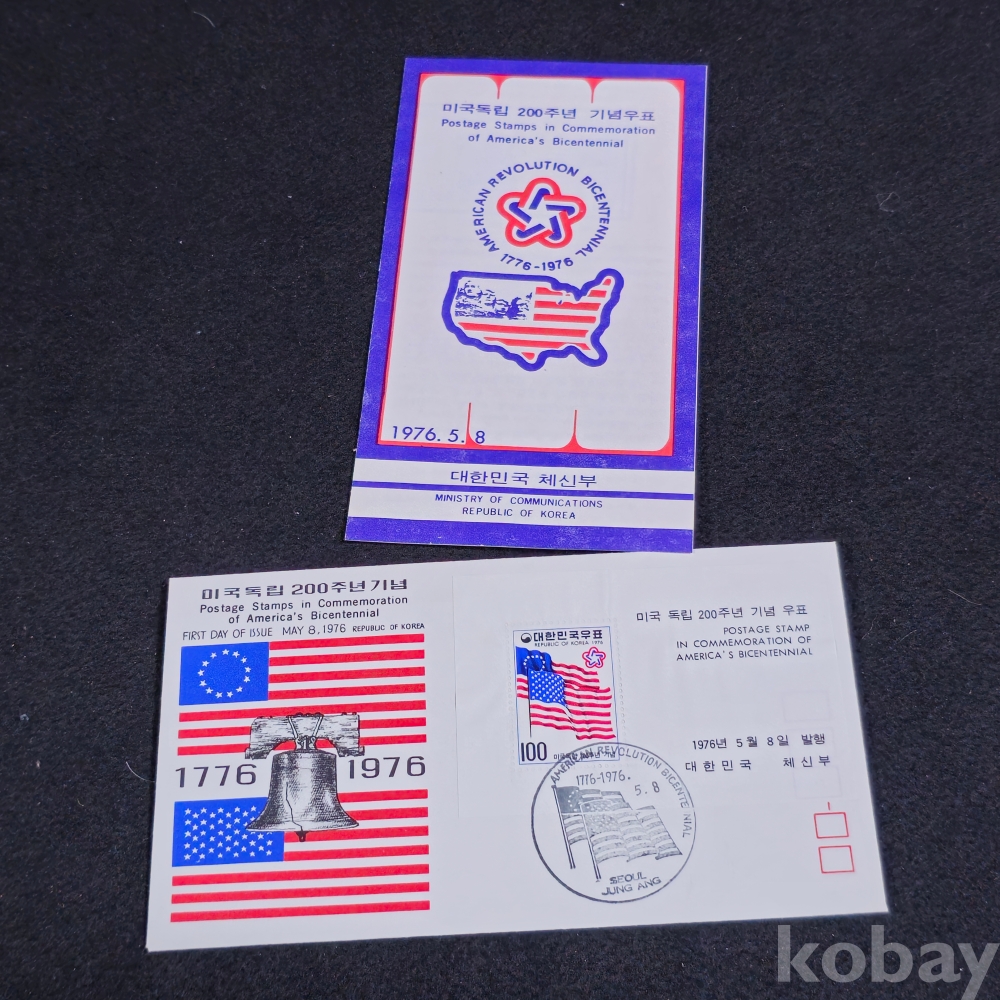 (천원경매) (((우취자료/초일봉피)) 1976년 미국독립 200주년기념 초일 봉피 (우표안내지포함)