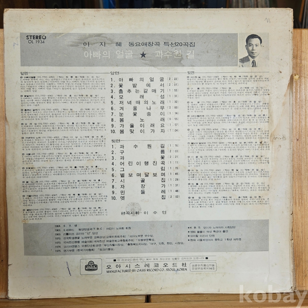 이지혜라는 친구가 불렀던 [ 과수원길 ] 이라는 노래와 동요 명곡이 수록된 희귀 음반이며 소장용으로 좋습니다.