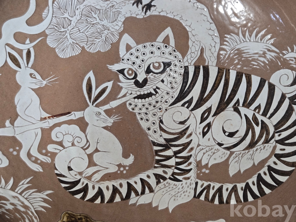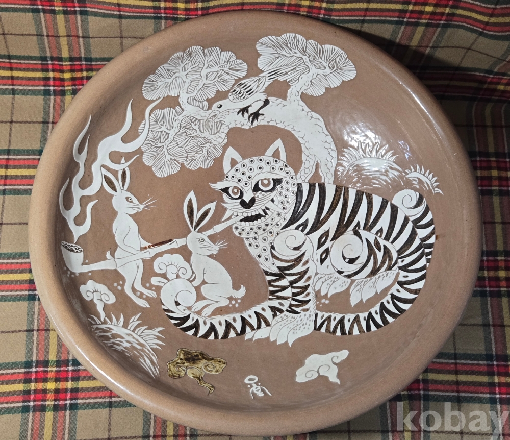 원당 길성선생의 걸작 희귀도자 작품, 가히 전성기 최고의 작품으로 손꼽힐 초대형 까치호랑이 수반입니다. 대를이어 소장하면서 훗날 보물급으로 평가되리라 해도 과언이 아닐 대작..