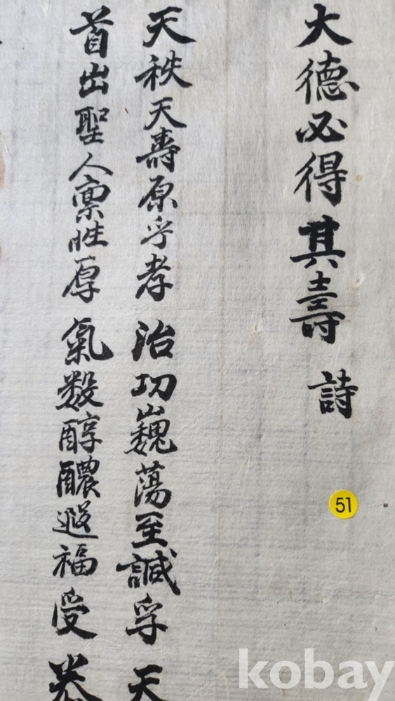 51호 하나下노랑봉투 번 //// 구한말 연대 갖춘 다듬이 장지에 명필로 쓰여진 시문장(詩文章)입니다,