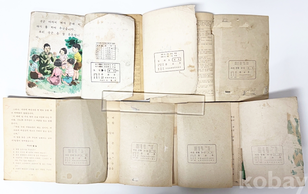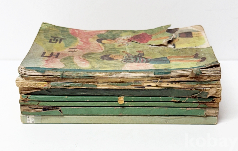 상품 설명 | 1) 도덕 1-1 / 1959년 / 총 70p / 표지 낡음, 앞표지-11p 하단 찢김, 뒤표지 낙서 및 책등 손상 2) 바른생활 1-1 / 1963년 / 총 56p / 책등 손상, 앞표지 상단 모서리 찢김, 뒤표지 낙서 및 하단부 일부 찢어짐, 책 모서리 쥐파먹은 자국, 45-46p 낙장 3) 바른생활 1-1 / 1965년 / 총 56p / 앞뒤표지 낙서, 앞표지 우측 하단 수리, 책등 손상, 46-47p 하단 찢어짐 4) 바른생활 6-2 / 1966년 / 총 150p / 책등 손상, 뒤표지 낙서, 6p 낙서, 129p 하단 일부 찢어짐 5) 바른생활 1-2 / 1970년 / 총 64p / 책등 손상, 23-26p 상단 오려짐, 27p 모서리 찢김, 31-40p 하단 모서리 찢어짐, 41-46p 하단 찢김, 47-50p 상단 오려짐 6) 바른생활 2-2 / 1970년 / 총 70p / 뒤표지 낙서, 책등 손상 7) 바른생활 4-2 / 1970년 / 총 146p / 표지 낡음, 뒤표지 오려짐, 책등 손상, 12-13p 낙서 8) 바른생활 6-2 / 1975년 / 총 160p / 87p 찢어짐 | ||