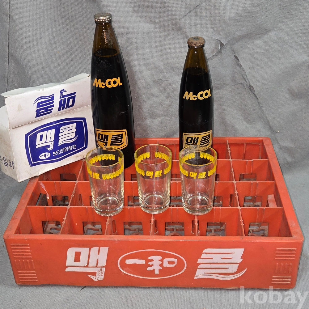맥콜 음료수 일괄 자료 == 맥콜 박스 + 맥콜미개봉 2병 + 맥콜 잔 3점 등 맥콜 음료수 일괄