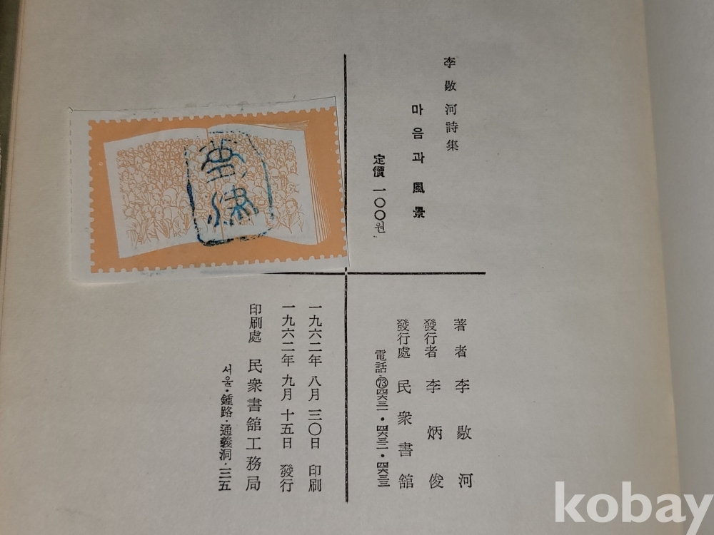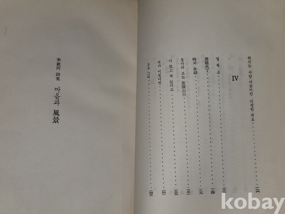 빈티지 세월 감이 느껴지는 희귀한 1962년 발행 마음과 풍경 - 이양하 시집 (1962 초판)입니다.