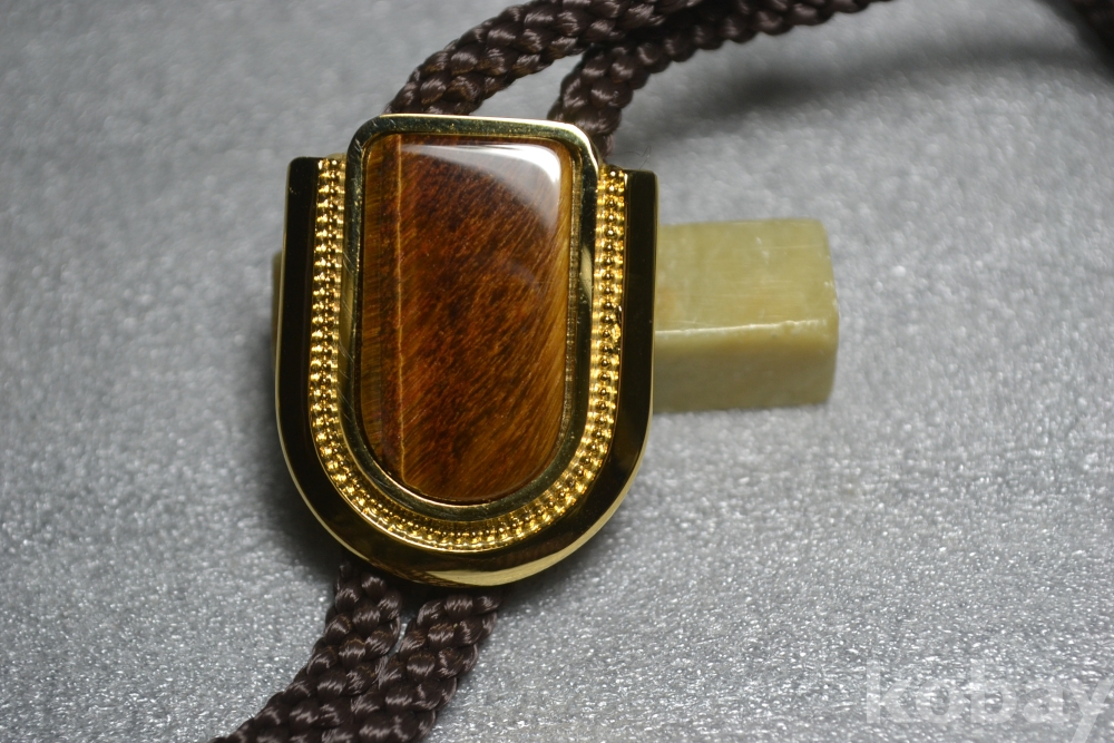 고급 진품 천연석 호안석(虎眼石/타이거아이) 장식알 루프타이 작품 입니다.
