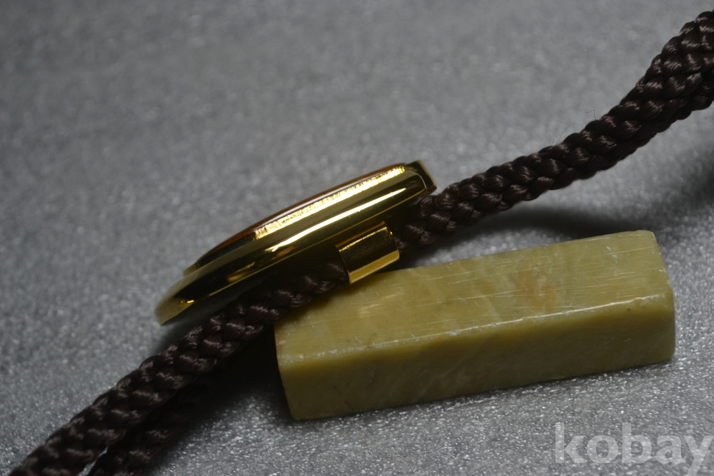 호안석보석알의 지름이 2 cm X 1.4 cm (세로 X 가로) 급 사이즈로 금장 골드프렘임 디자인이 섬세하고 아주 이쁜 호안석 루프타이~ 작품 입니다. (사진참조)
