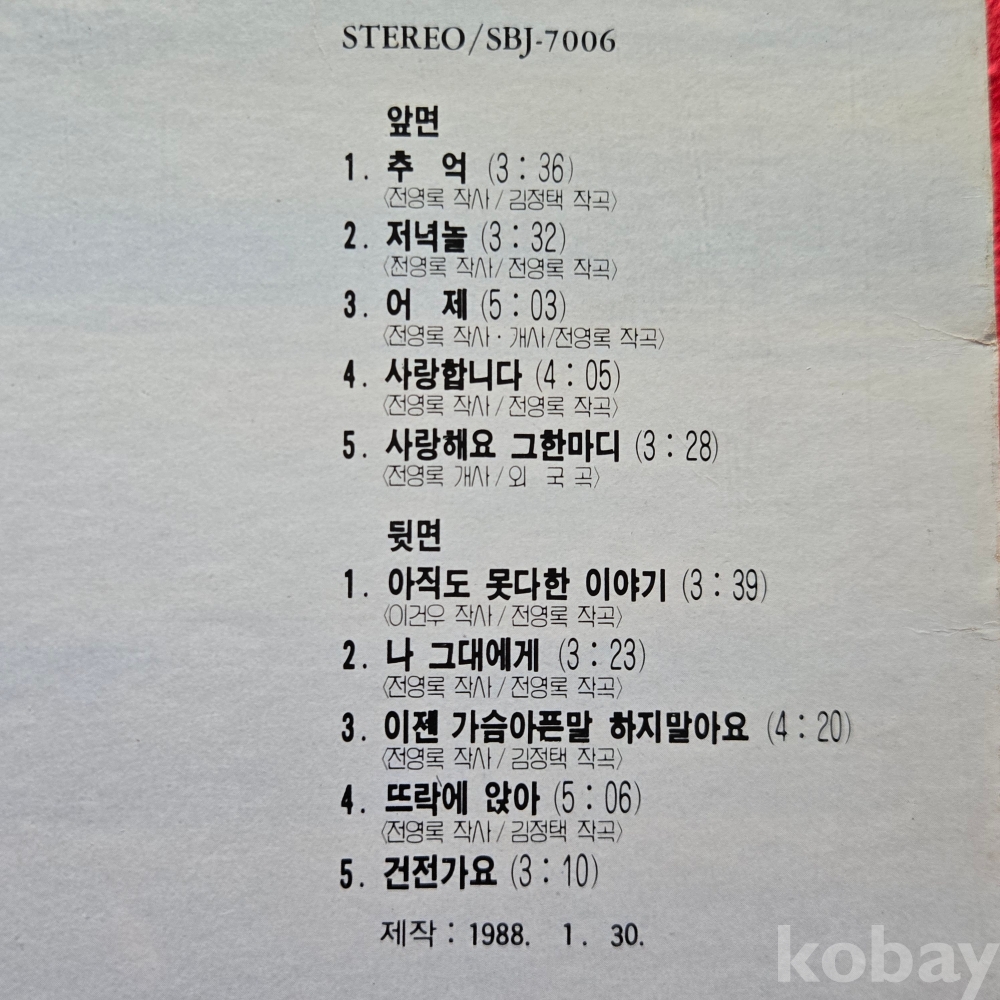 EX : 약간의 마모, 모서리 찢김 존재 음반상태