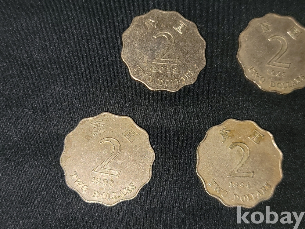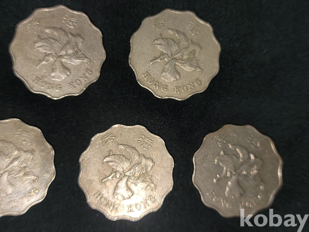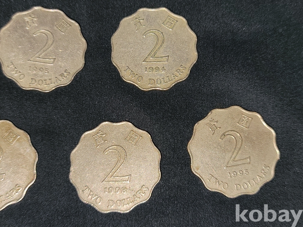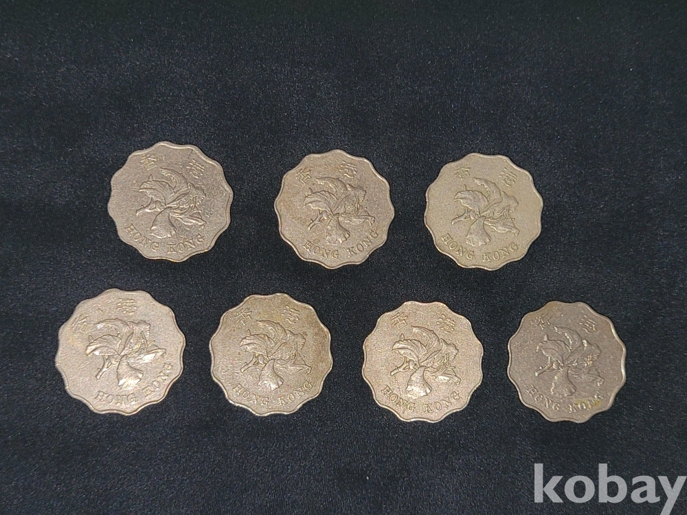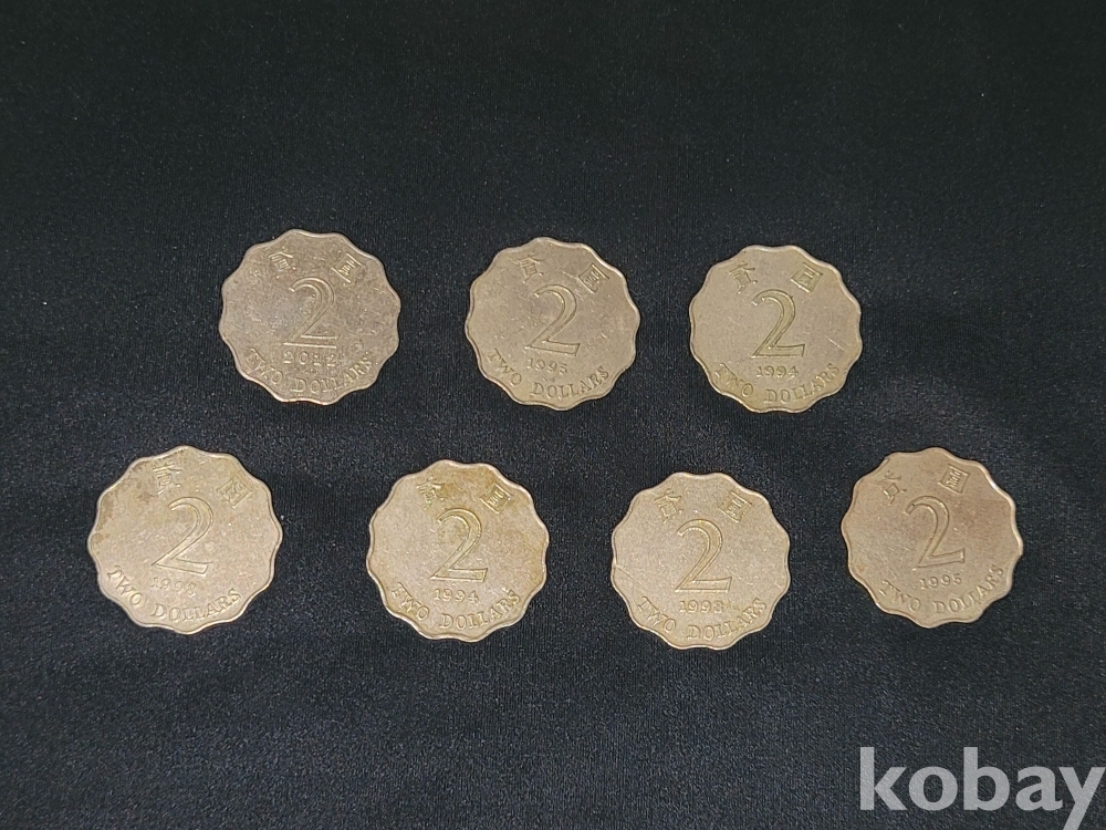 빈티지 홍콩 2달러 동전 7개 일괄입니다.