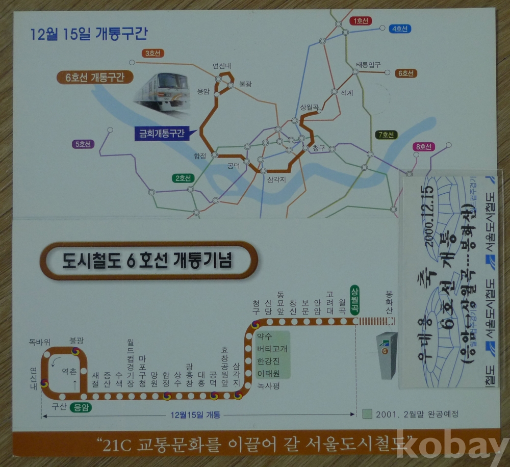2000년 도시 철도 6호선 개통 기념 승차권