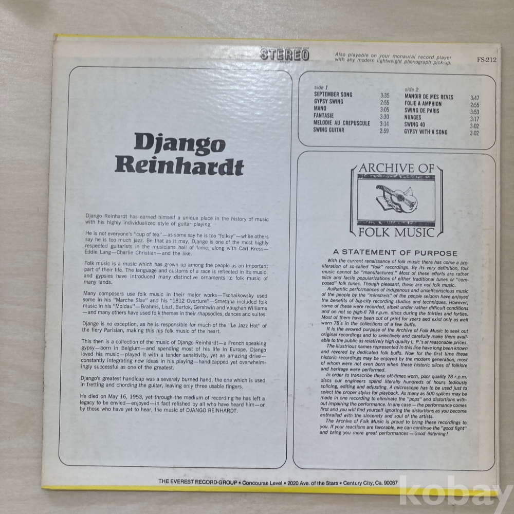 아티스트 / 타이틀 / 발매년도 jango Reinhardt – Django Reinhardt 1967