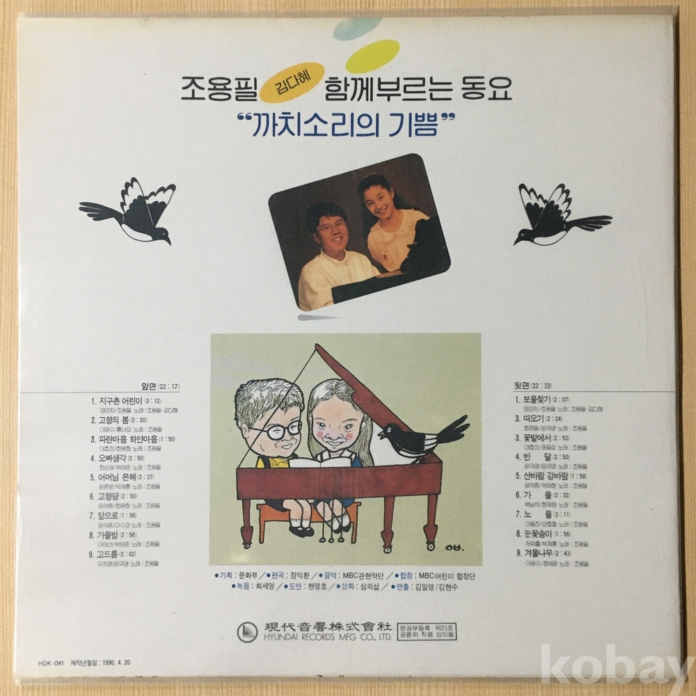 1. 지구촌 어린이 (조용필/김다혜) 2. 고향의 봄 3. 파란 마음 하얀 마음 4. 오빠 생각 5. 어머님 은혜 6. 고향땅 7. 앞으로 8. 가을밤 9. 고드름 | 1. 보물찾기 (조용필/김다혜) 2. 따오기 3. 꽃밭에서 4. 반달 5. 산바람 강바람 6. 가을 7. 노을 8. 눈꽃송이 9. 겨울나무 |
