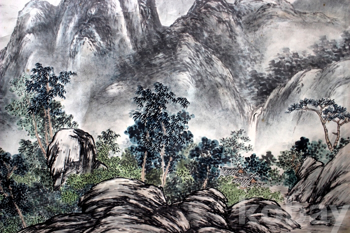 상태 : 우측 상단에 표구시 지워질 연한 점 모양이 얼룩이 약간 있을 뿐 깨끗하고 좋음