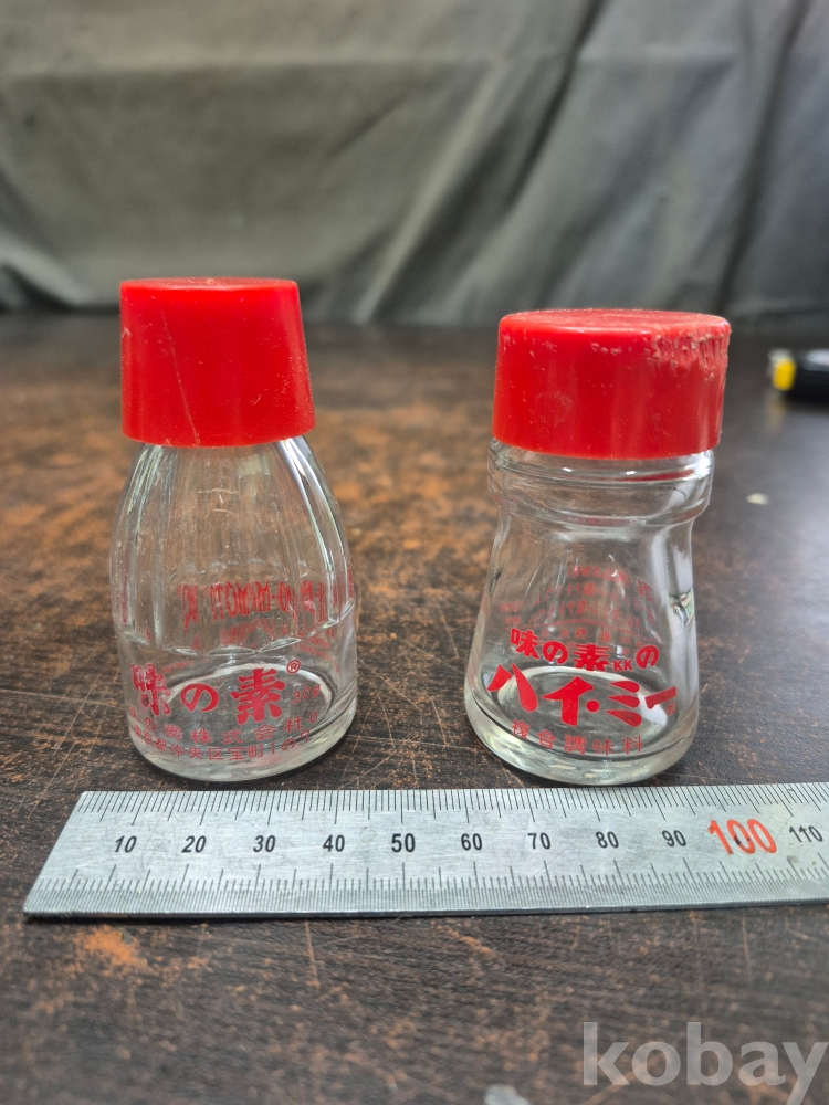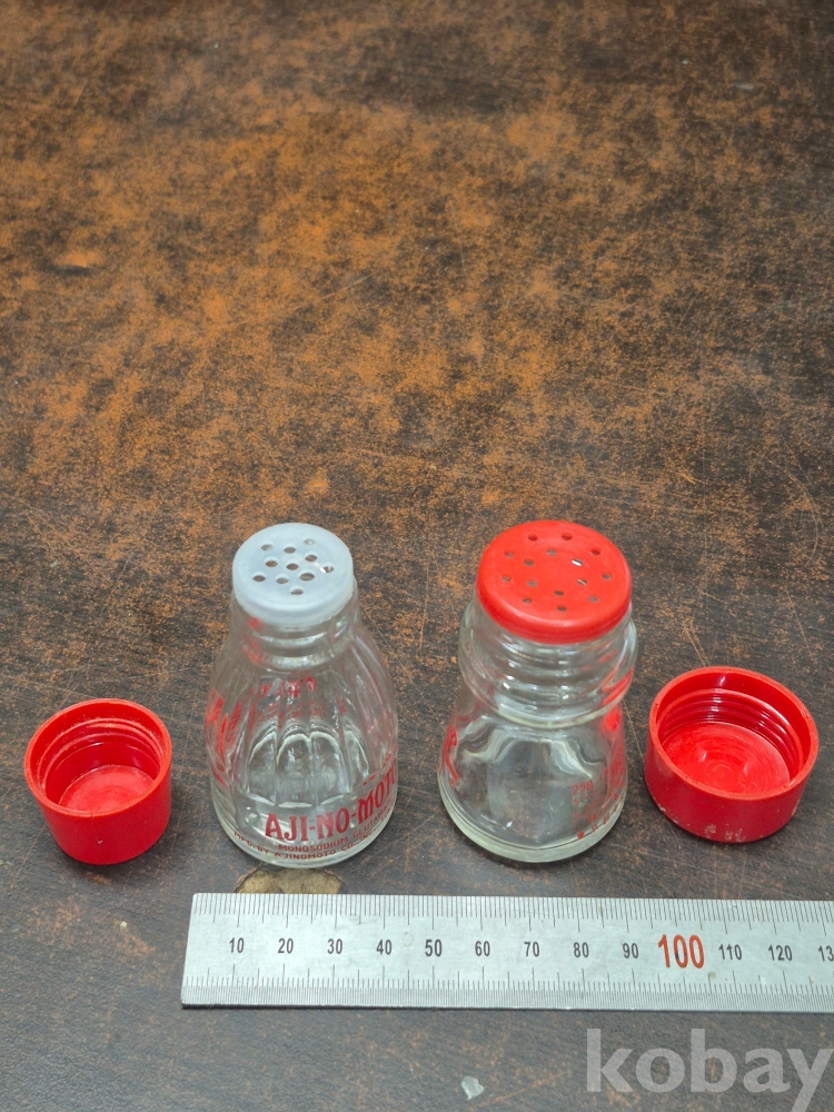 일본 아지노모토 감칠맛 조미료 미원 유리병 보관함 과 소금 후추 설탕 보관함 2점 일괄 4*4*8