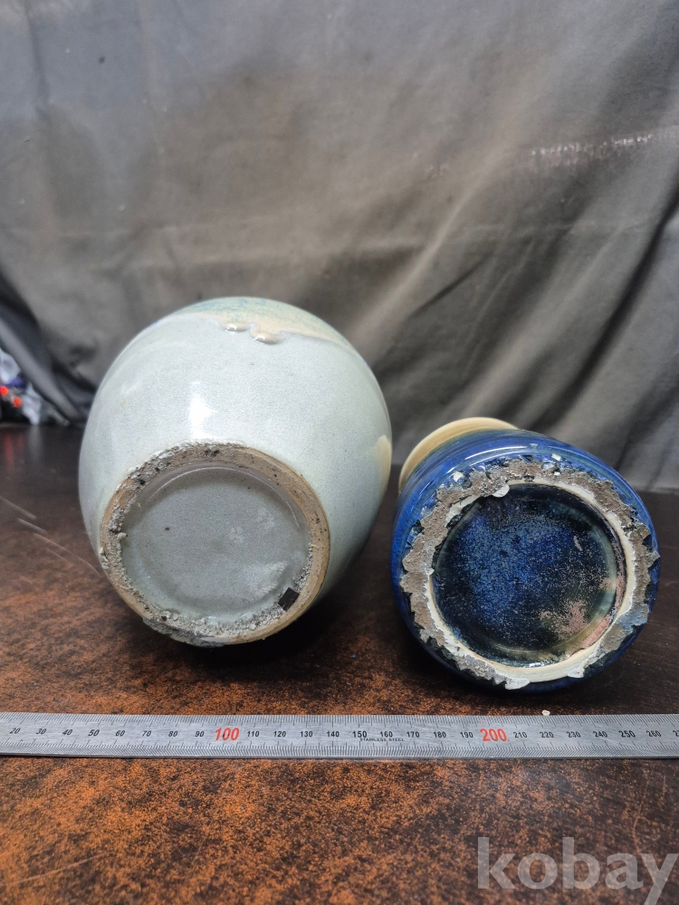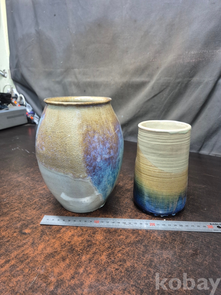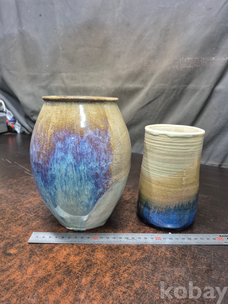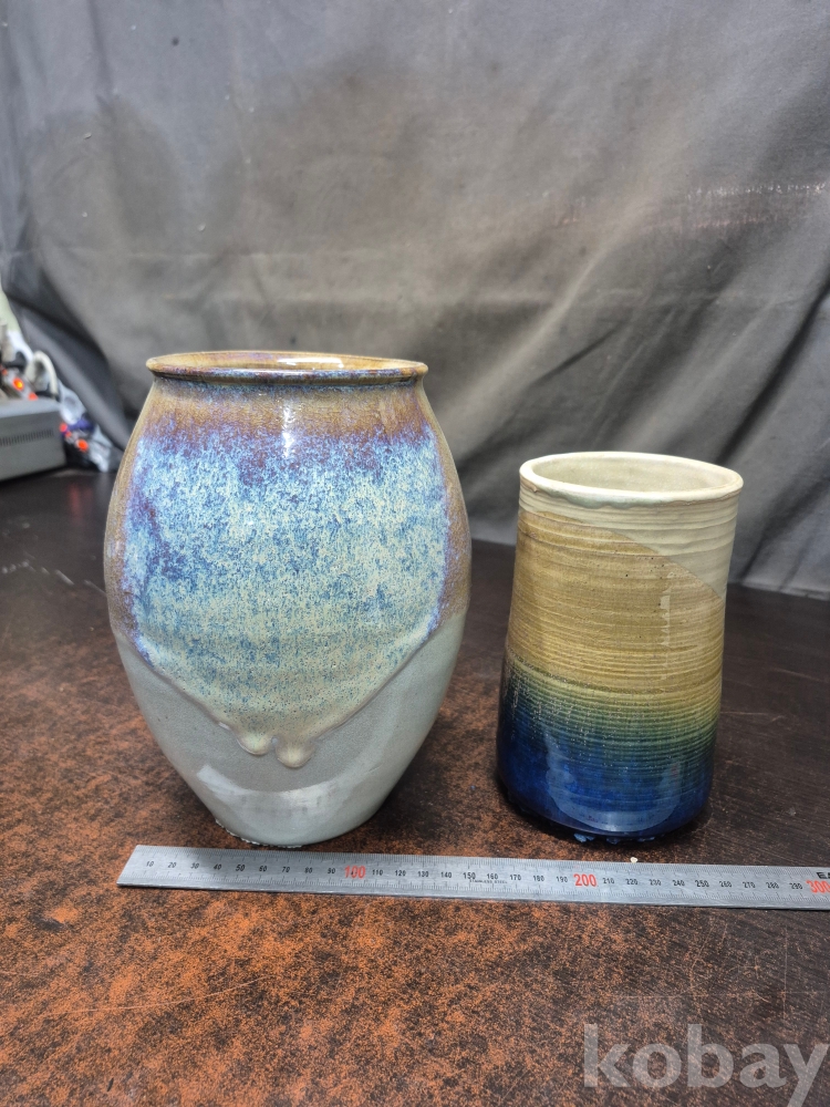 1970-80년대 작품도자기 화병 2점 물레로 만들어져 있어요 16*16*22