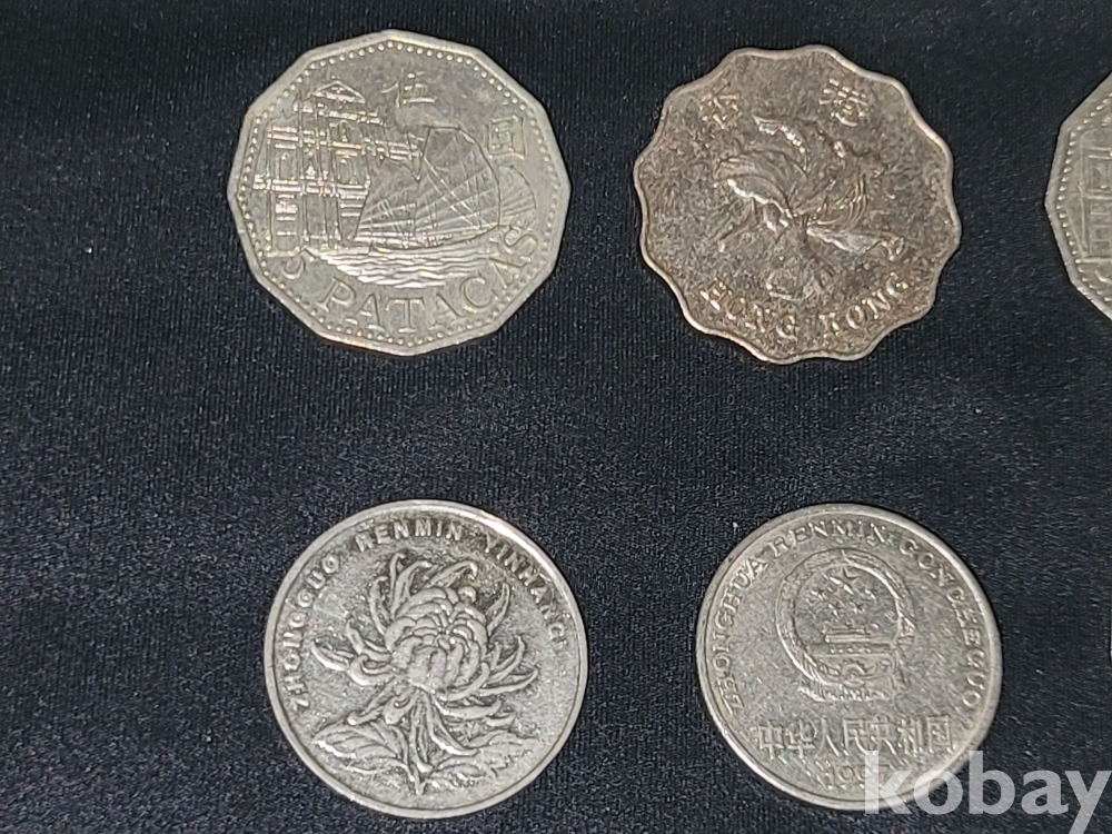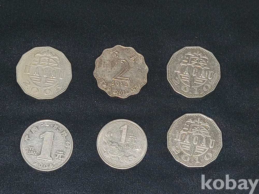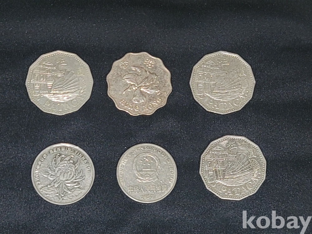 홍콩 2달러, 마카오 5파타카, 중국 1위안 등 동전 6종 일괄입니다.