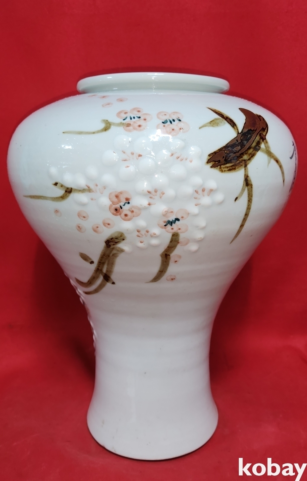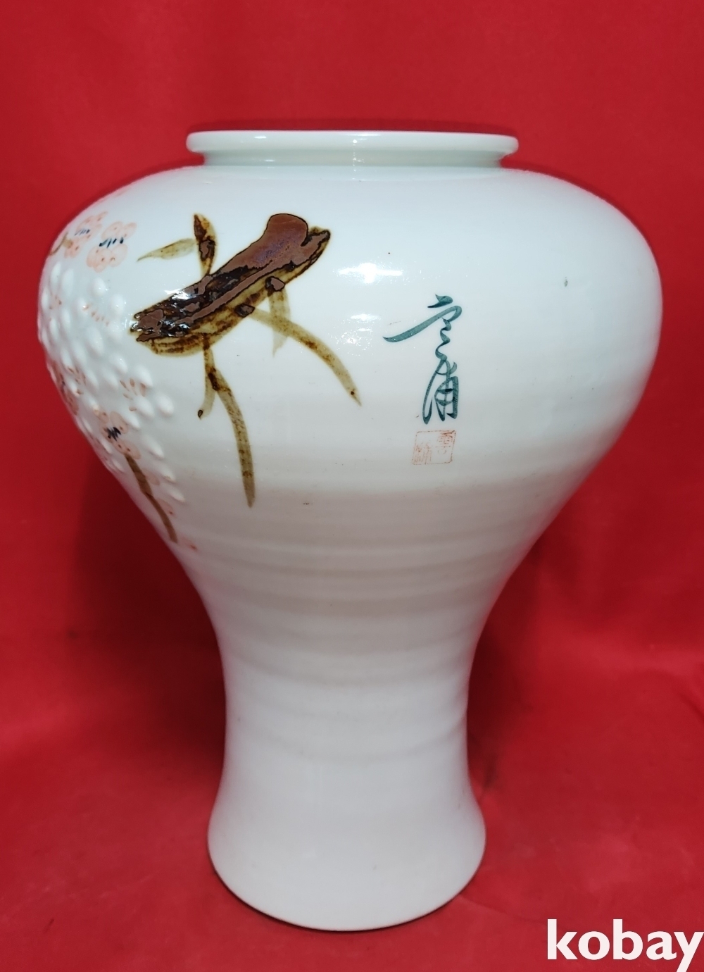 작가의 수결이 보이는 철화 화훼문 병입니다,