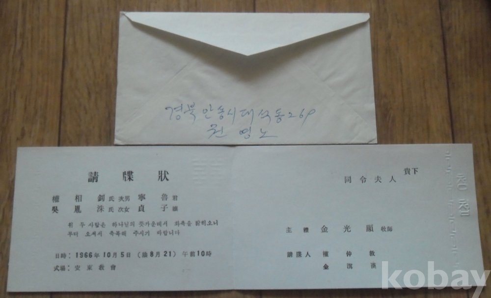 1966년 결혼청첩장(안동교회)