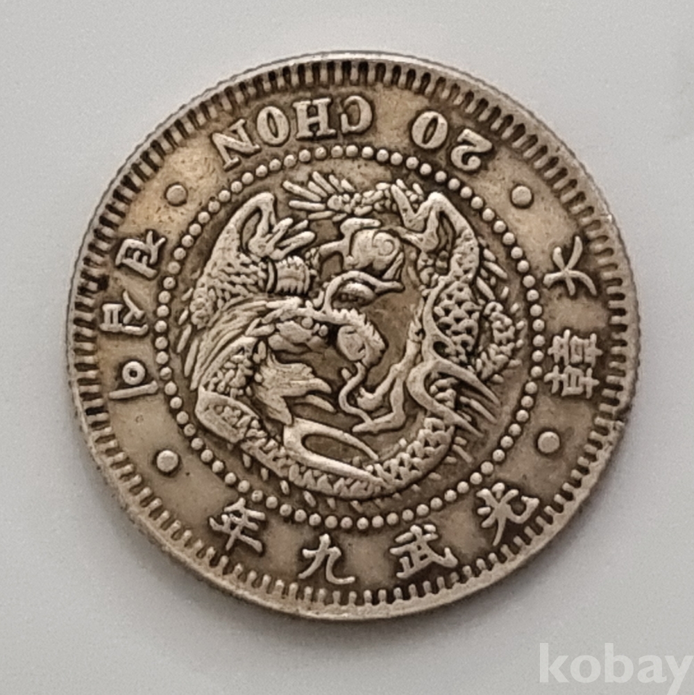 1905년(광무 9년)에 주조된 대한제국 20전 주화입니다.