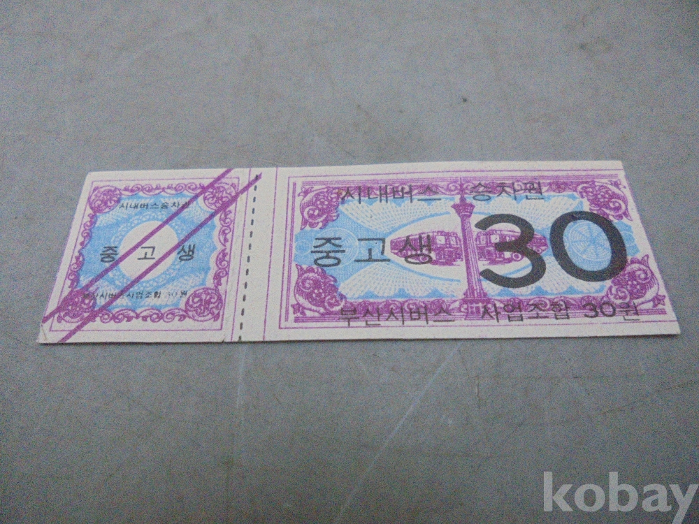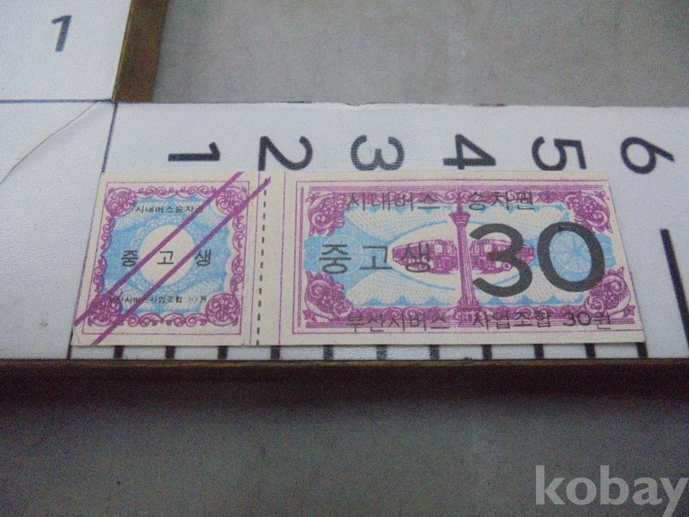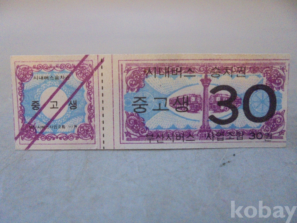 1970년대 중반 30원 부산 시내버스 " 극희귀 " 승차권 미사용 입니다.