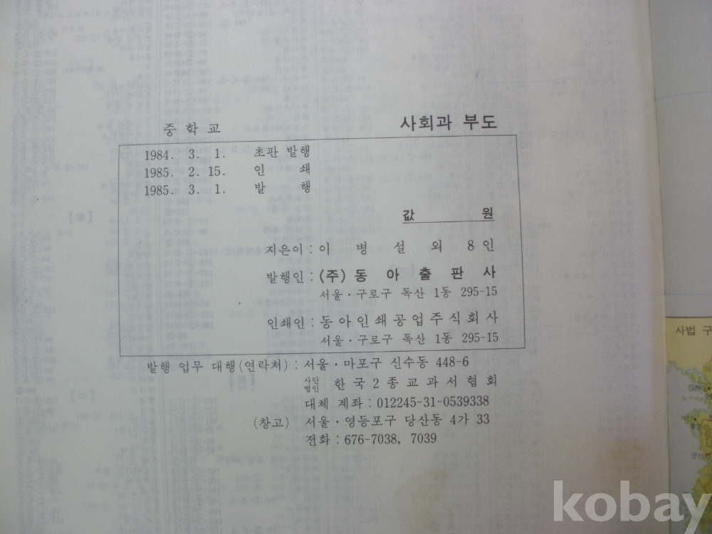 (중학교) 사회과 부도 (1985년, 동아출판사)