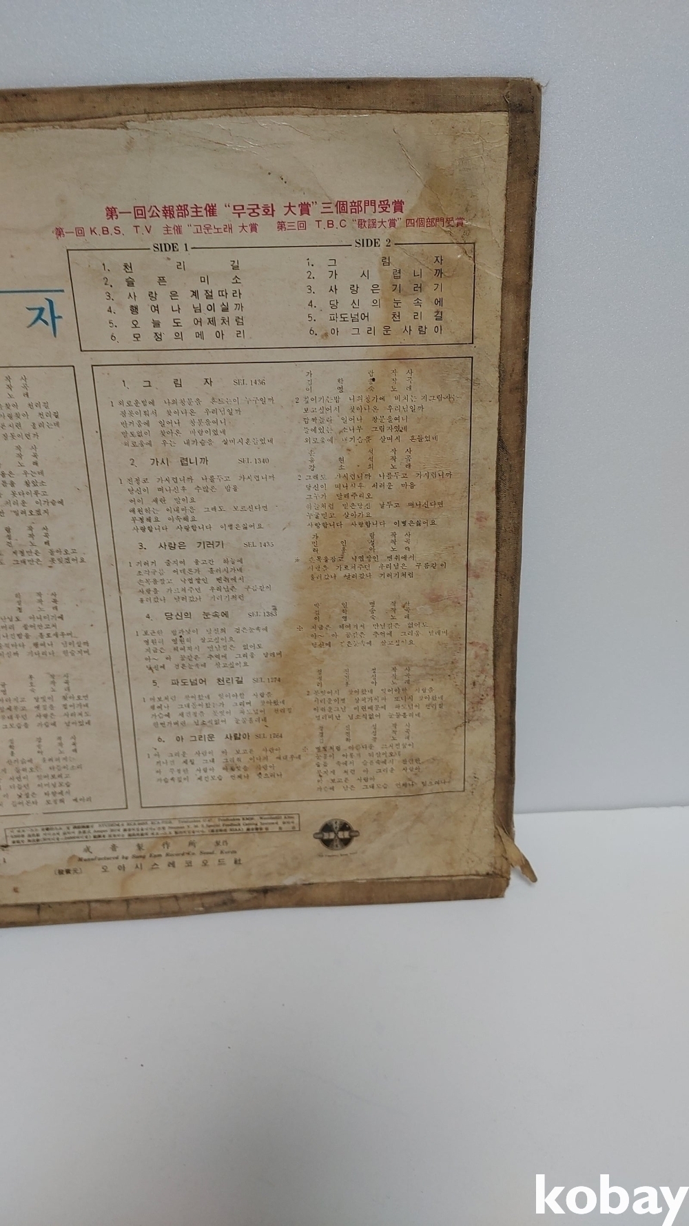 | 자켓상태 | G : 눈에 띄는 손상, 테이프, 필기 존재 | 음반상태 | G : 눈에 띄는 스크래치, 튐 또는 노이즈 발생 | 발매정보 | 초반 | 가사지여부 | 무 |