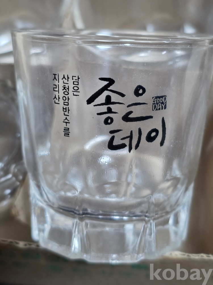 (((술자료/술잔))) 지리산 산청암반수를 담은 좋은 소주! 좋은데이 소주잔 6개 (미사용)