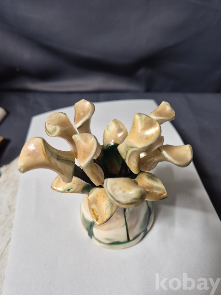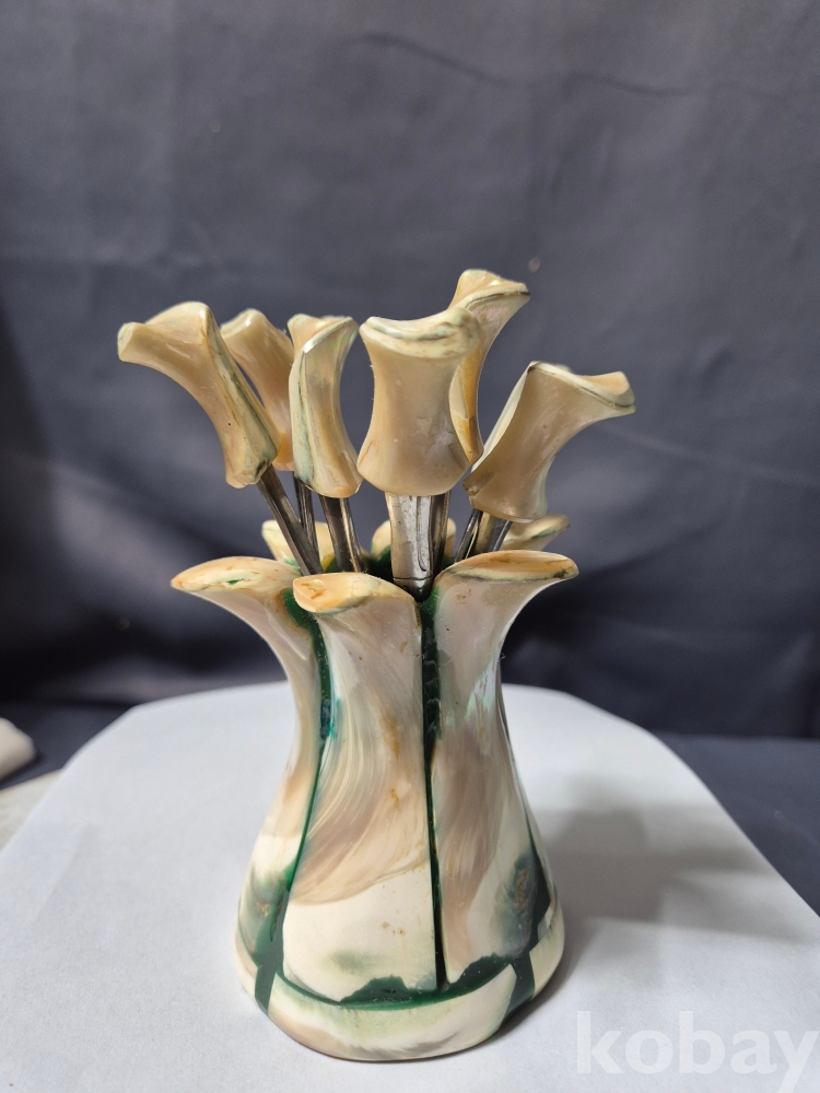 스푼 5개 포크 3개이며 제주도에서 만든 소라모양의 재털이를 볼때 비슷한 색감의 제품입니다.
