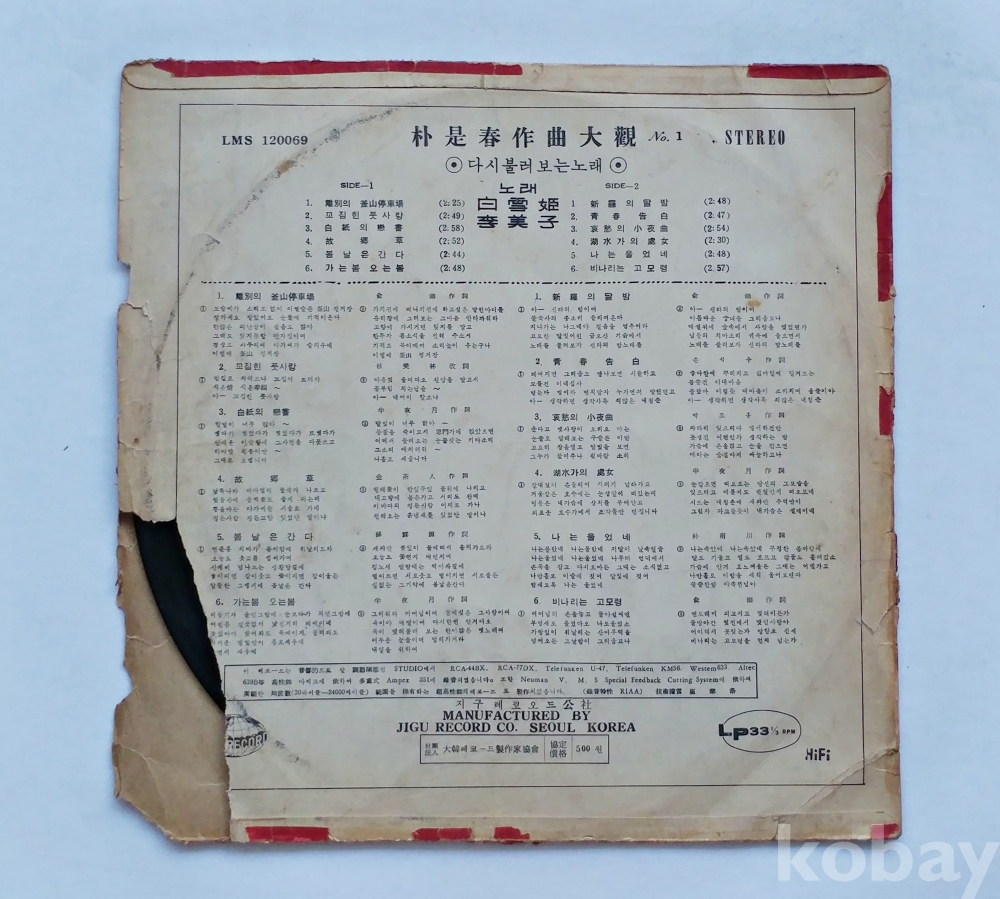 | 자켓상태 | VG : 주름, 접힘, 모서리 찢김 다수 | 음반상태 | EX : 재생에 영향 없는 가벼운 기스 존재 | 발매정보 | 알수없음 | 가사지여부 | 무 |