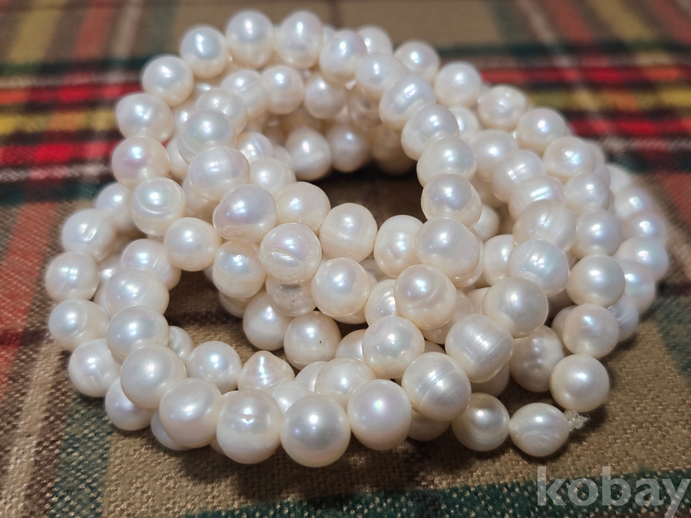 미사용상태로 보관된 진주알, 비드체인으로. 고리장식없이 줄에 꿰어놓은상태지만 현재상태로 레이어드 목걸이 팔찌등으로 연출가능합니다.