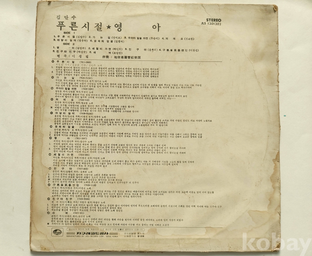 | 자켓상태 | VG : 주름, 접힘, 모서리 찢김 다수 | 음반상태 | EX : 재생에 영향 없는 가벼운 기스 존재 | 발매정보 | 초반 | 가사지여부 | 무 |