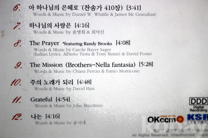 수록 곡 목은 사진을 참조하시기 바랍니다