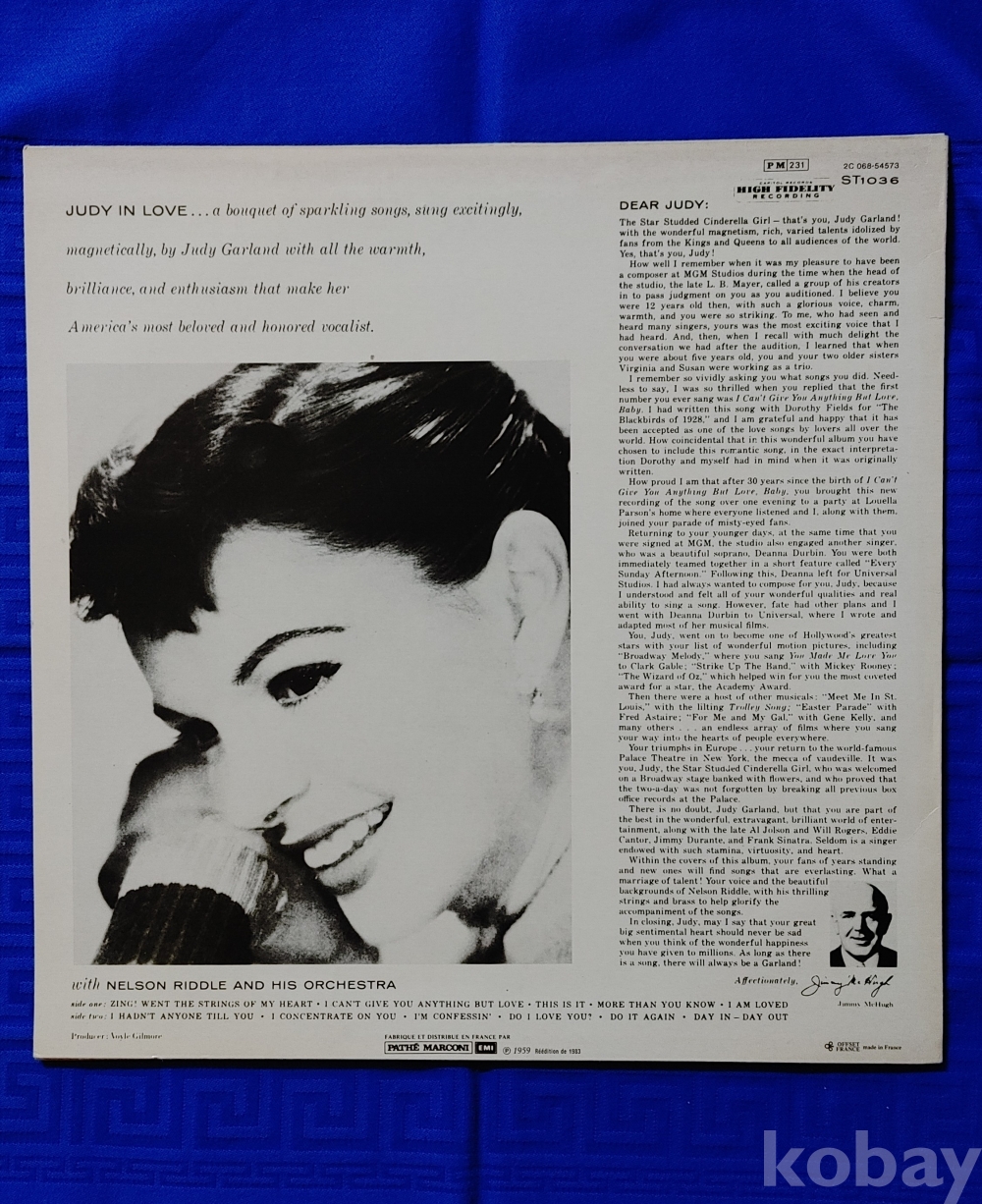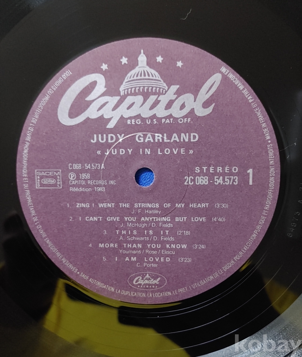 Judy Garland 앨범입니다 / 트랙은 별도로 제공하지 않습니다 / 쟈켓 하단이 벌어져 있습니다 / 접착or 속비닐이용 / Nm / 프랑스