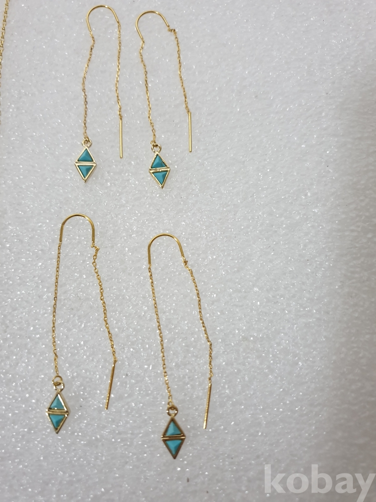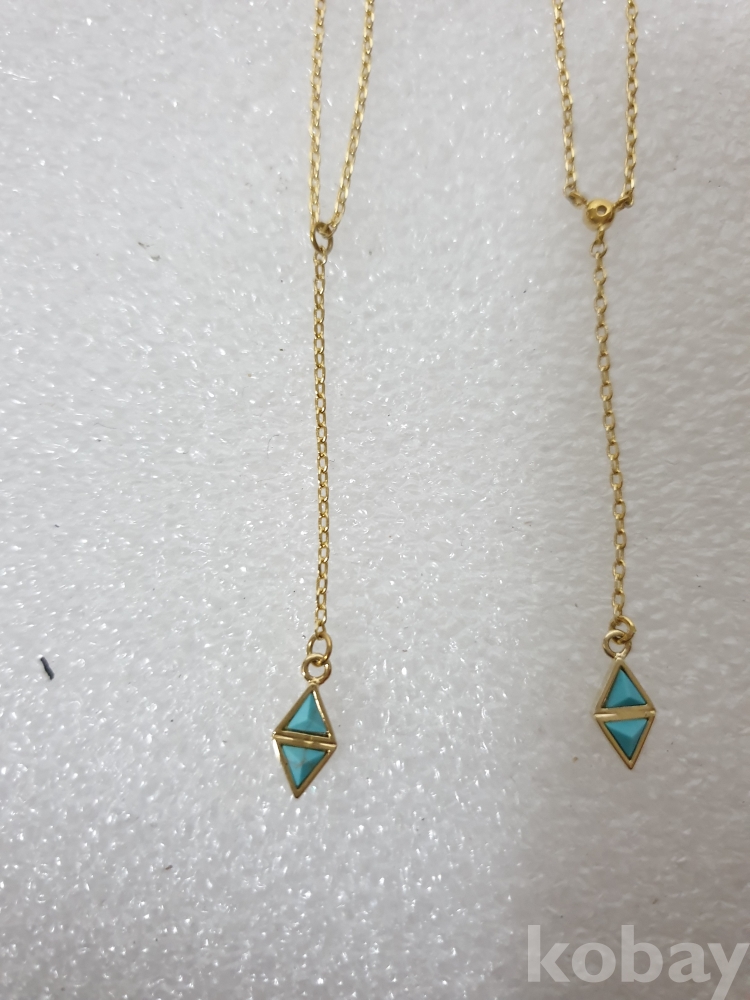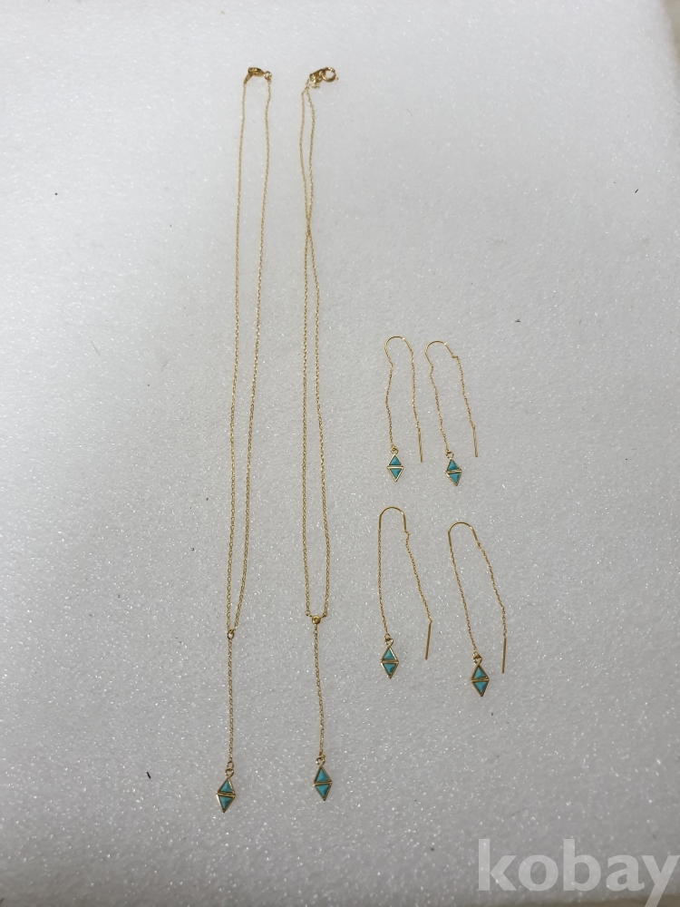 {천원경매} Y-3-1197 삼각하늘색 펜던트 목걸이 2개+귀걸이 2쌍