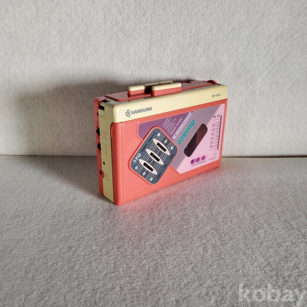 1980년대 후반부터 1990년대 초반, 대한민국 청소년들과 음악 애호가들의 일상을 완벽하게 지배했던 시대의 아이콘, 삼성전자(SAMSUNG)의 포터블 카세트 라디오 '마이마이(mymy) MODEL MY-A50'입니다.