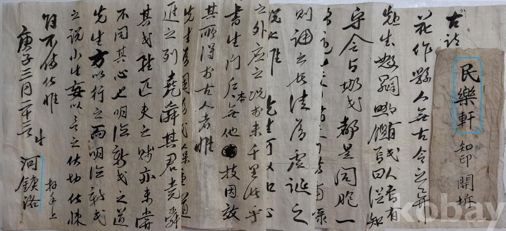 ◈ 앞 면에 ‘民樂軒知印開坼’이라는 피봉이 붙어 있다.