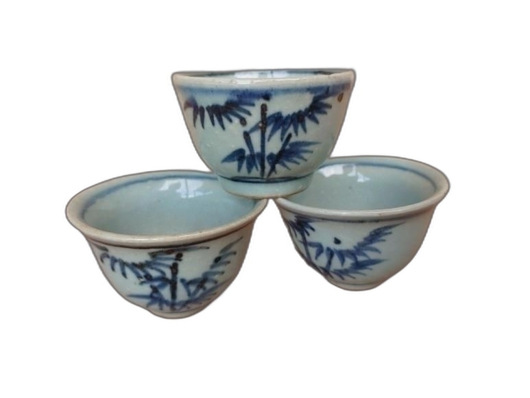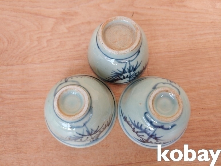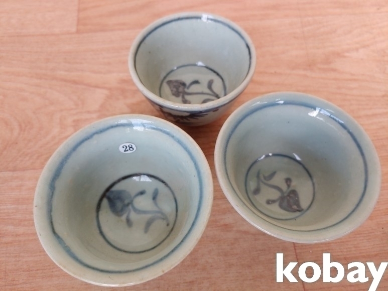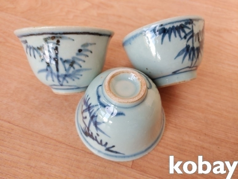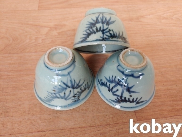 대나무 문양 다완 도자기 3개 입니다.