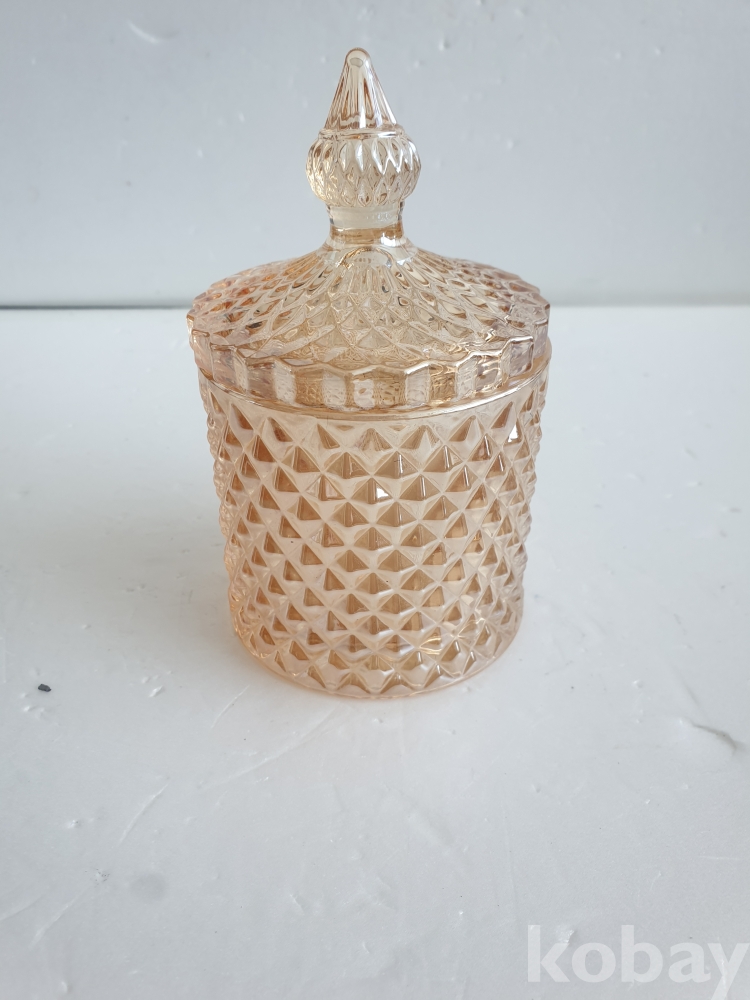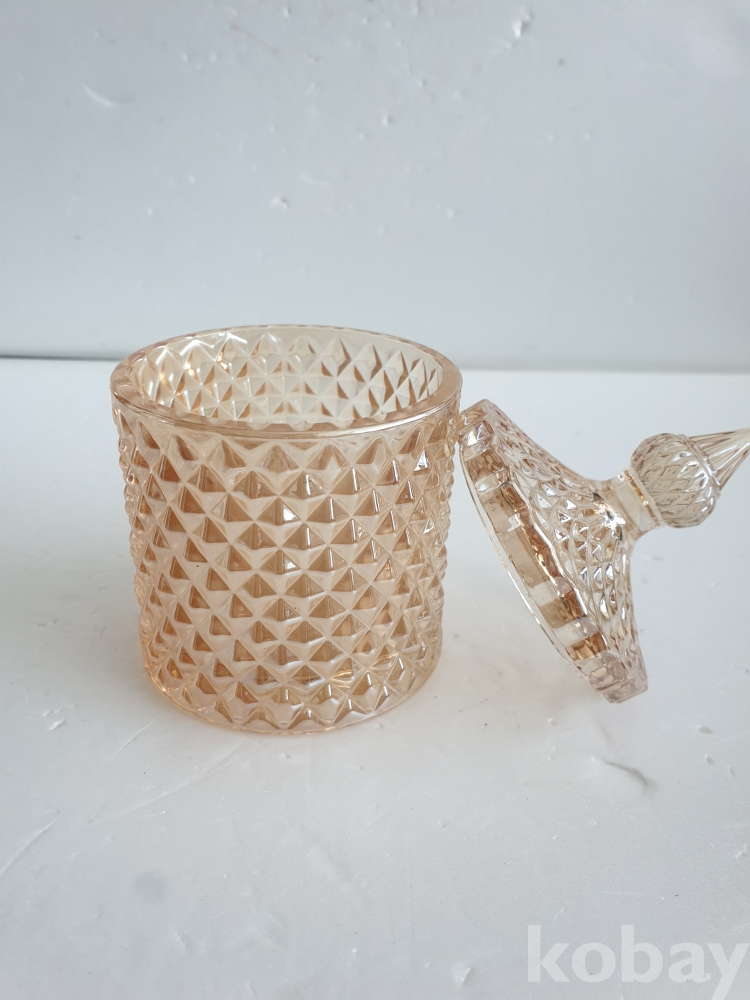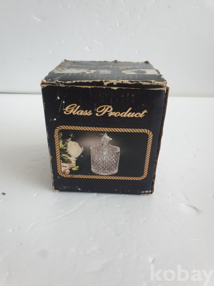[천원경매] 3-170 브론즈 컬러의 크리스탈 유리 보관 용기(미사용제품이나 상자 훼손됨, 지름 7.5cm, 뚜껑 뺀 용기 높이 8cm)