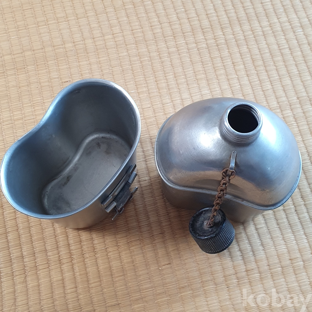 군자료로 군장비품중하나로 식수보관 수통과 수통컵 한셋트로 결합됨니다