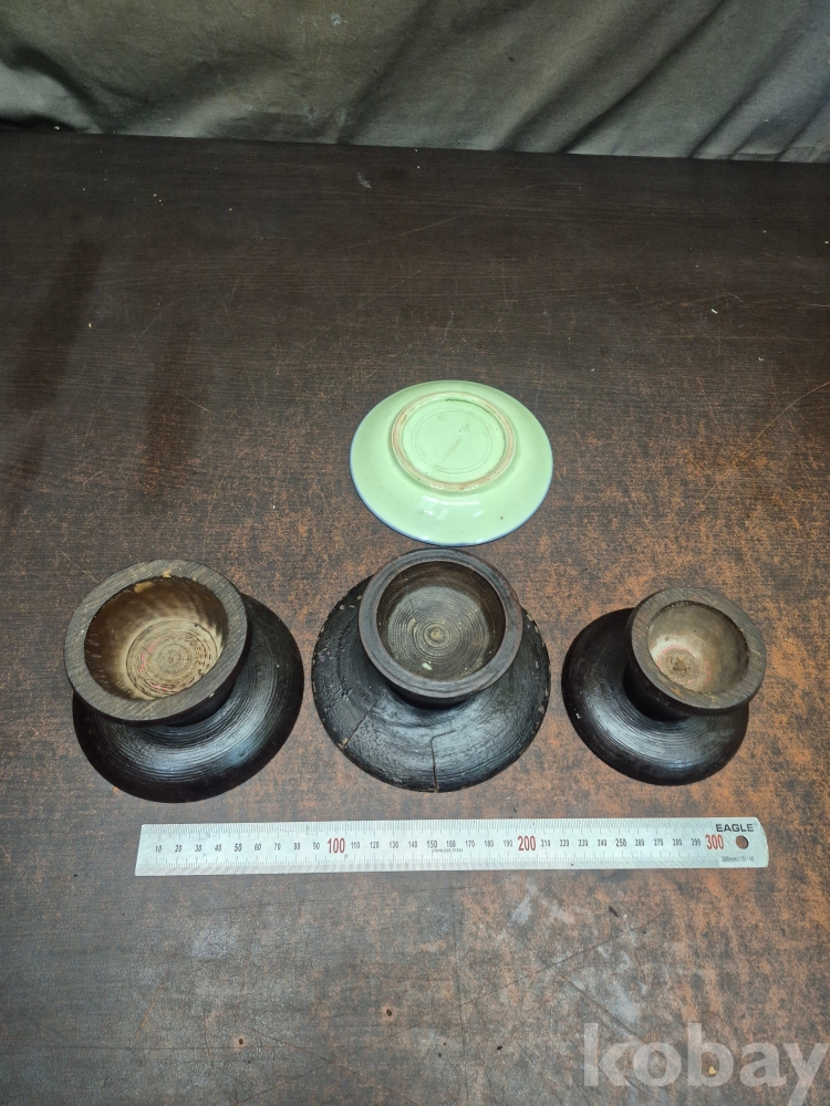 원목으로 만든 목기 9점과 외사기 접시 1점 일괄 16*16*4