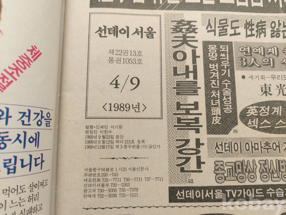 - 1989년 4월 9일발행.(제22권13호) 제1053호.