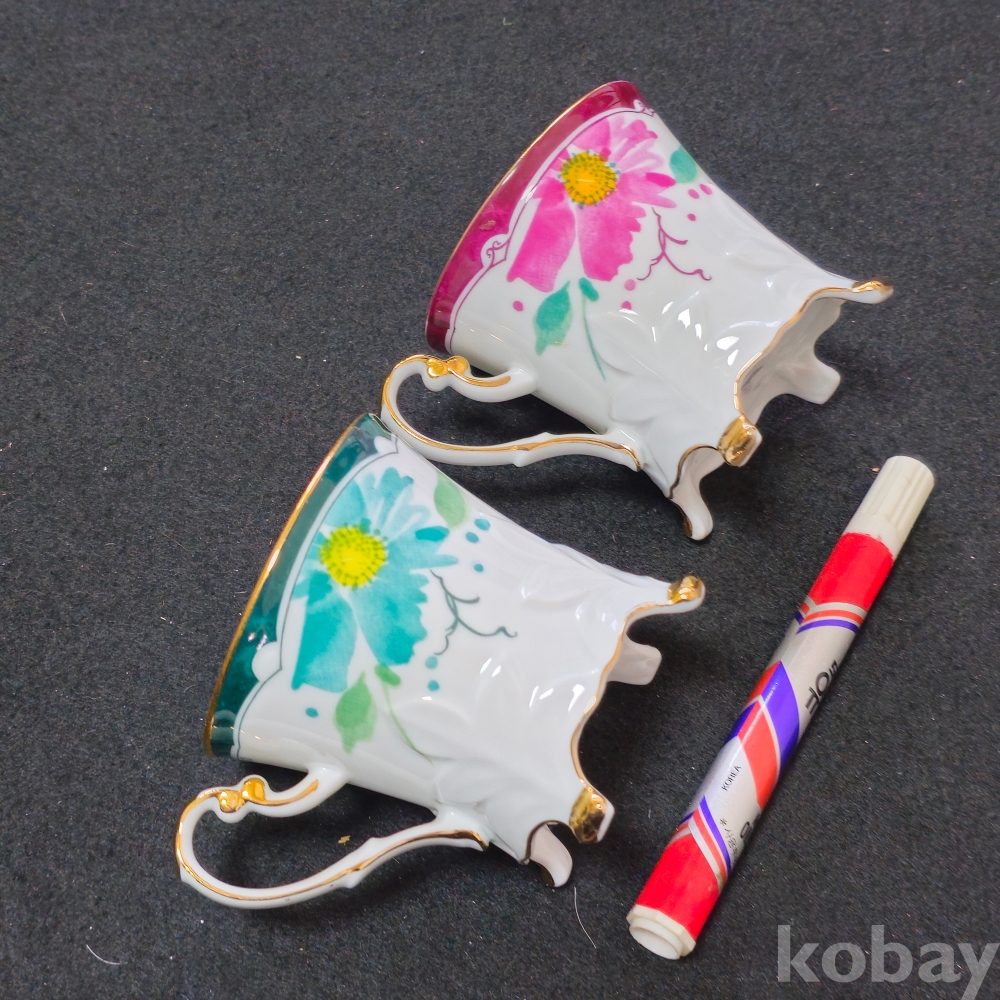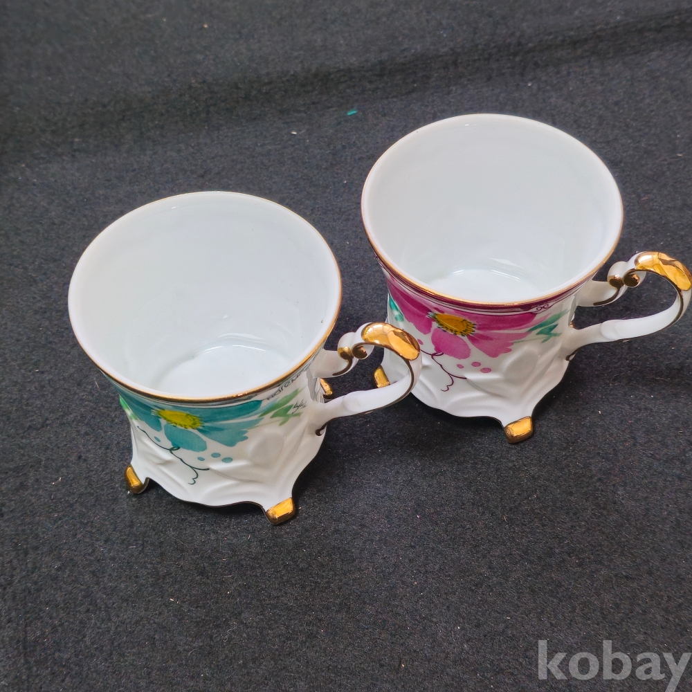 (((도자기커피잔))) 오래전 꽃그림과 디자인이 특이한 이쁜 커플 도자기 커피잔 (NareMoa STUDIO)