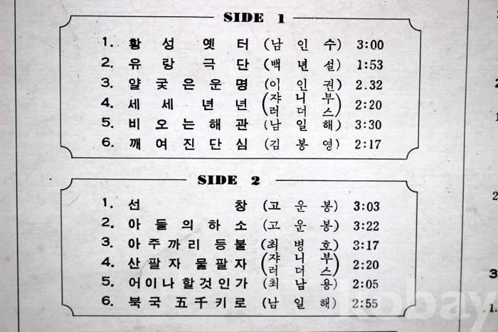 수록 곡 목은 사진을 참조하시기 바랍니다