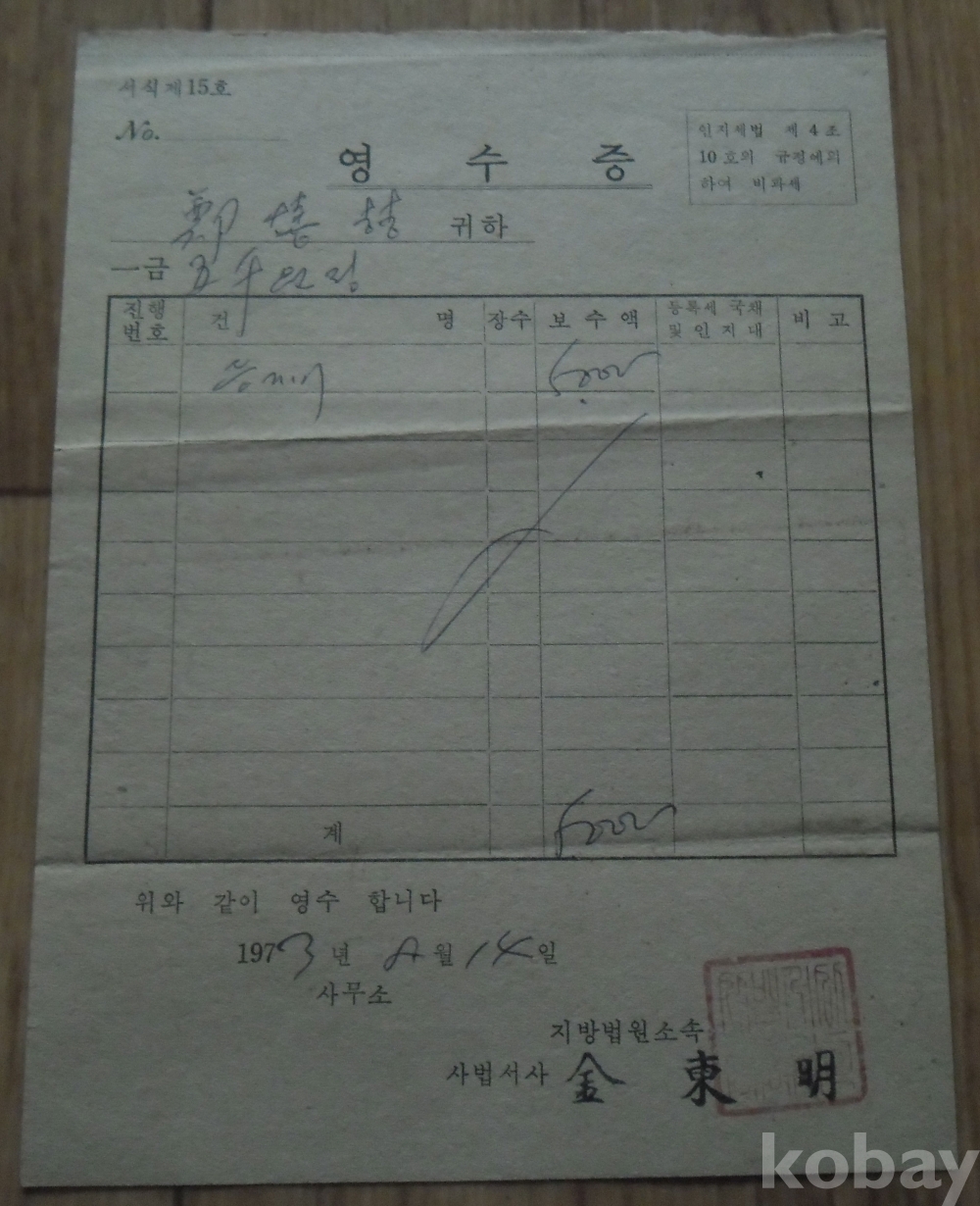 1973년 사법서사 발행 영수증