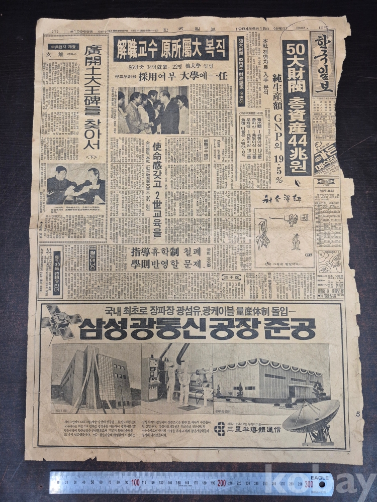 | 1984년 6월 14일 6월 15일 한국일보 낱장 5점 삼성광통신공장준공 광고 로얄XQ자동차광고 패스포트 광고지등 | 52*78 |